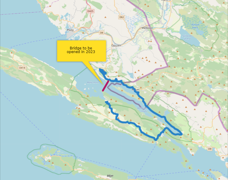 I'll give specific example. Pelješac Bridge is scheduled to be opened by the end of 2022 - https://en.wikipedia.org/wiki/Pelje%C5%A1ac_Bridge. Currently, PTV is not using it whith start time set on 2023-01-19 (see attachement).