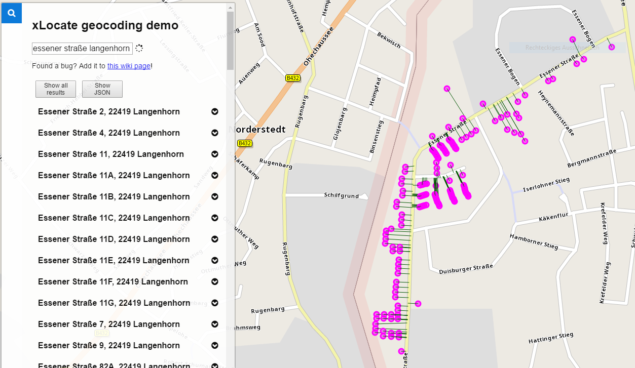 Much more detailed than in the past... new data quality enables us to distinguish between house number appendices (14a) and furthermore the hits contains coordinates at the street and at the houses rooftop. Isn't that cool?