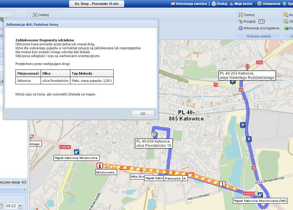 In a PTV Map&Guide internet there is a pretty nice info about route called "Blocked route section".