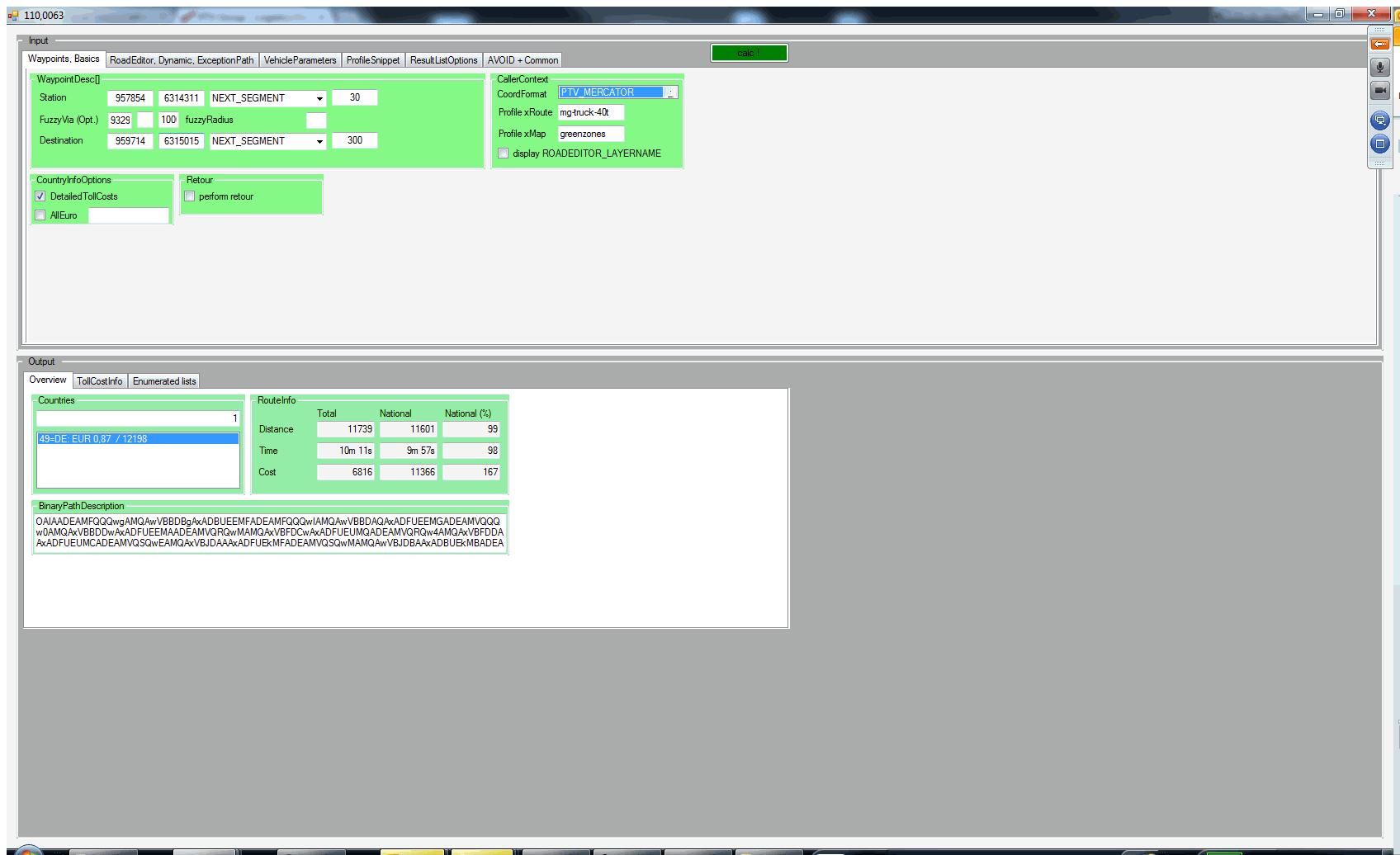 We are using the default mg-truck-40t profile and LinkType.NEXT_SEGMENT for the WayPointDesc.