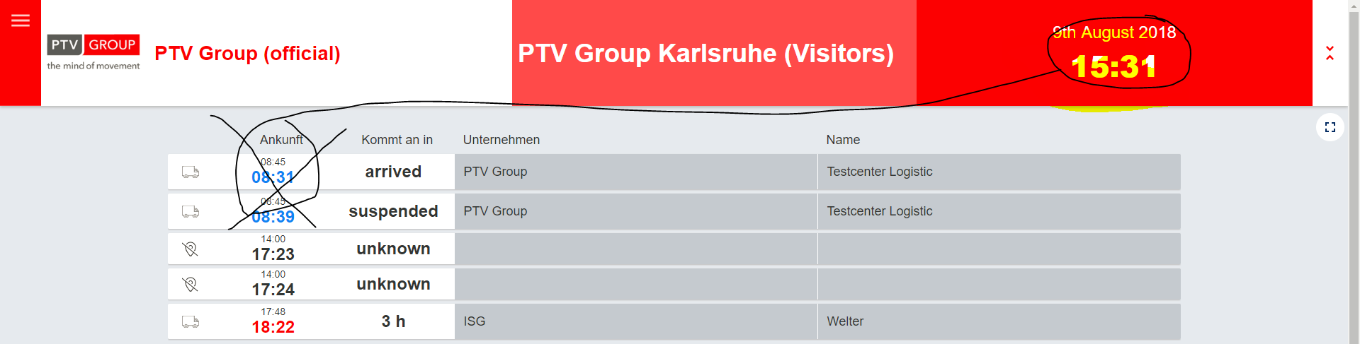 The Arrival Board also contains historic / arrived tours of the last 24h which is a very helpful functionality in many cases.