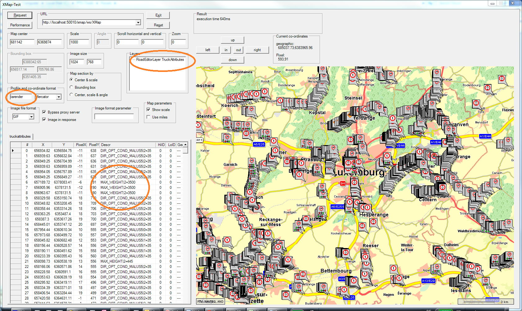 Output of request via xMap-Test tool