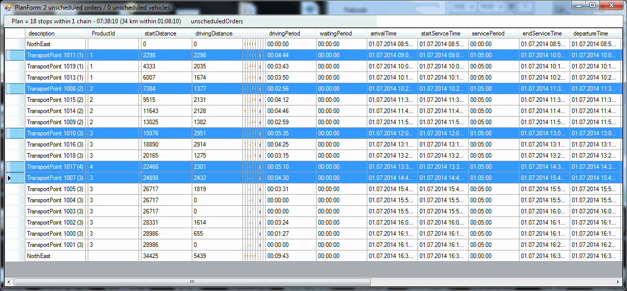 - extraSitePeriod = Extra service period at the transport point in case of a given SiteId ([sec], >= 0). If there are several consecutive logistic points in a tour referring to logistic points with the same siteId, the extra service period would only be considered at the first logistic point of that row (for example the period for a security check at the gate of the same premises). In case of different extra site periods, the maximum value is relevant for the first logistic point.