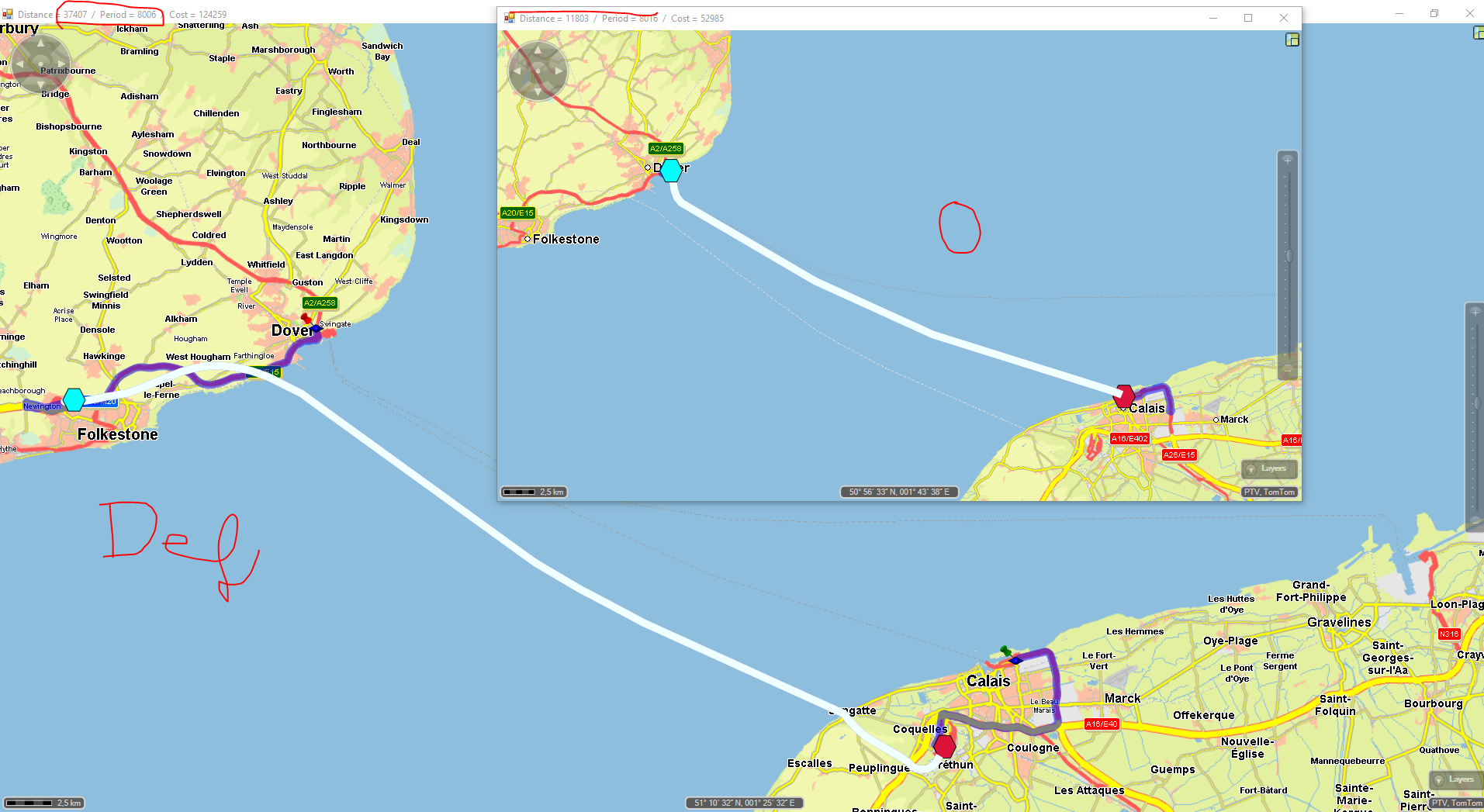 I could avoid all the surrounding ferrys > but why not prefer the ferry from Calais to Dover(?):