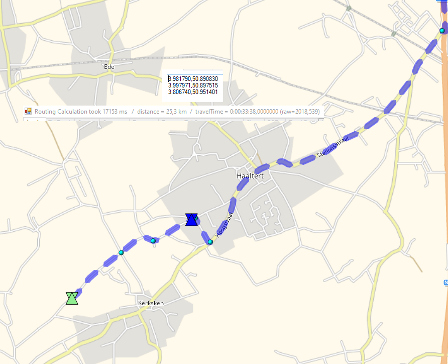 (Doing a simple REST call with start location lat: 50.890830 lon: 3.981790 & end: lat: 50.951401 lon: 3.806740 )