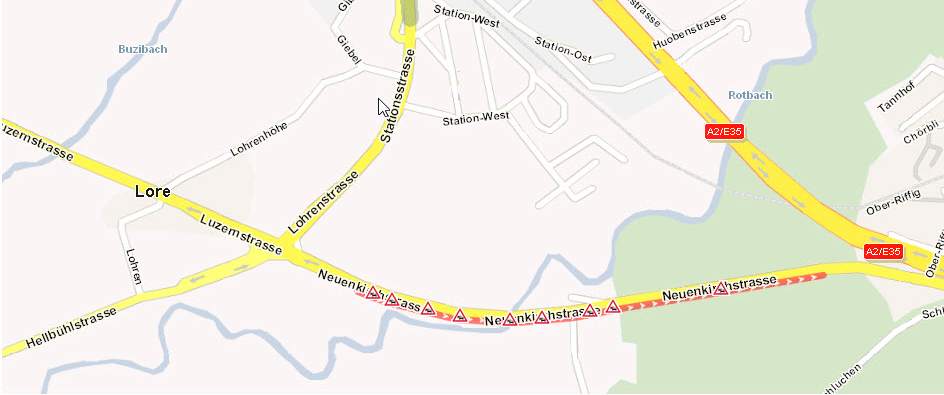 In our map traffic jam is displayed: