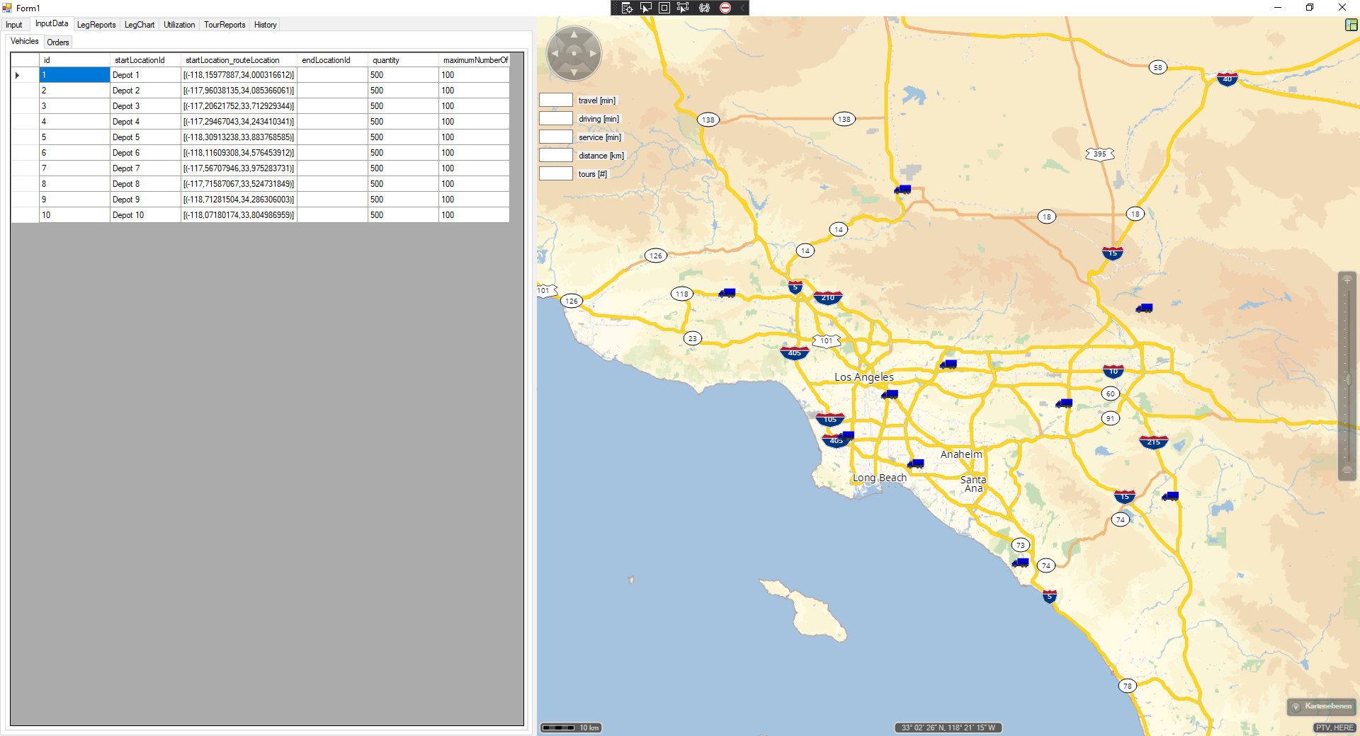 com.ptvgroup.xserver.xtour.OrderWithAlternativeDeliveryDepots and com.ptvgroup.xserver.xtour.OrderWithAlternativePickupDepots. Just want to show you the potential of these approaches based on a client I wrote for a potential project. The locations (depots and orders) are ficticious.