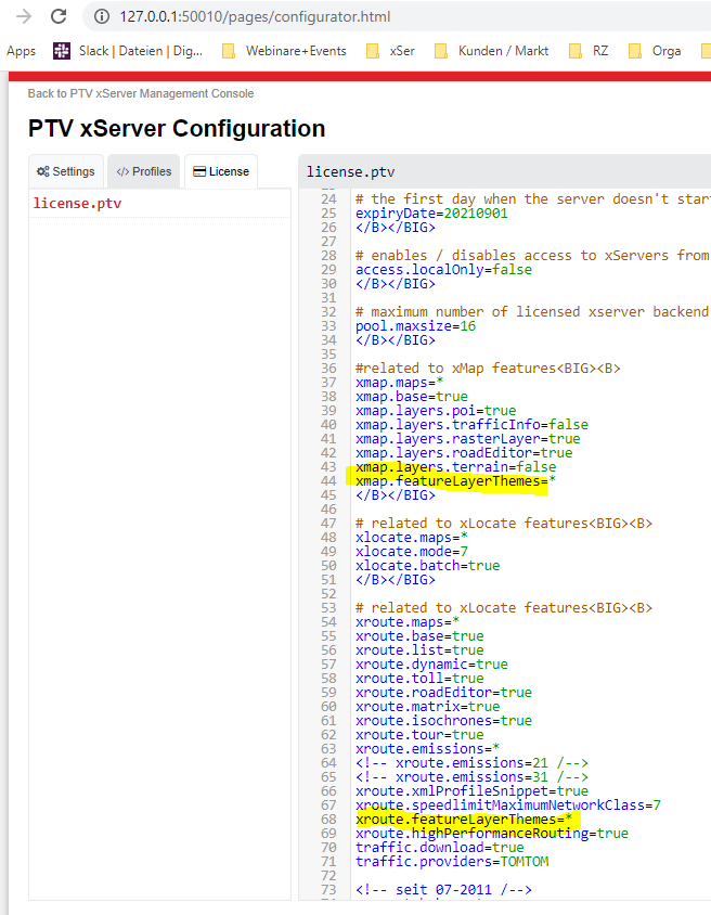 OK based on your suggestion I decided to do a simple GET request to "http://xMapServer:port/pages/serverCommand.jsp?readLicense=license.ptv", read all the content and find out the license status that way.
