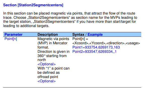 The section "Station2Segmentcenters" expects three parameters: