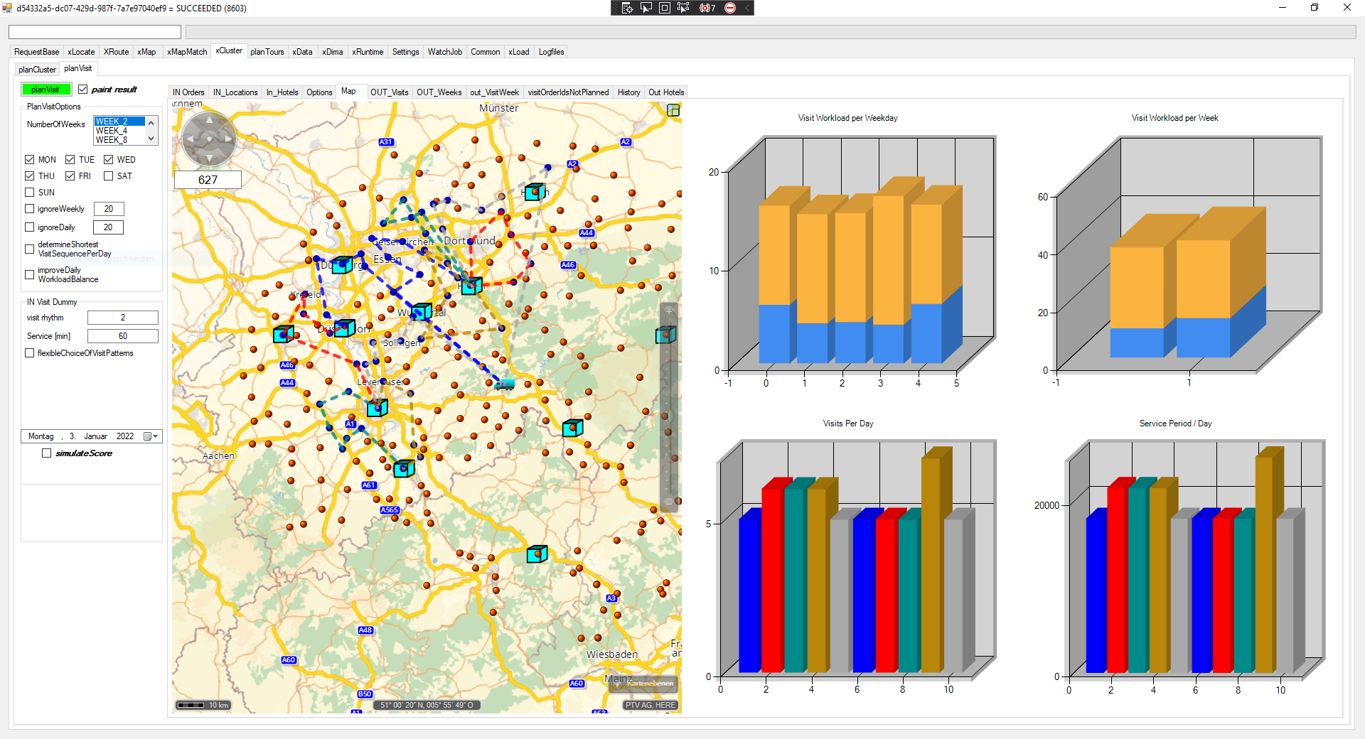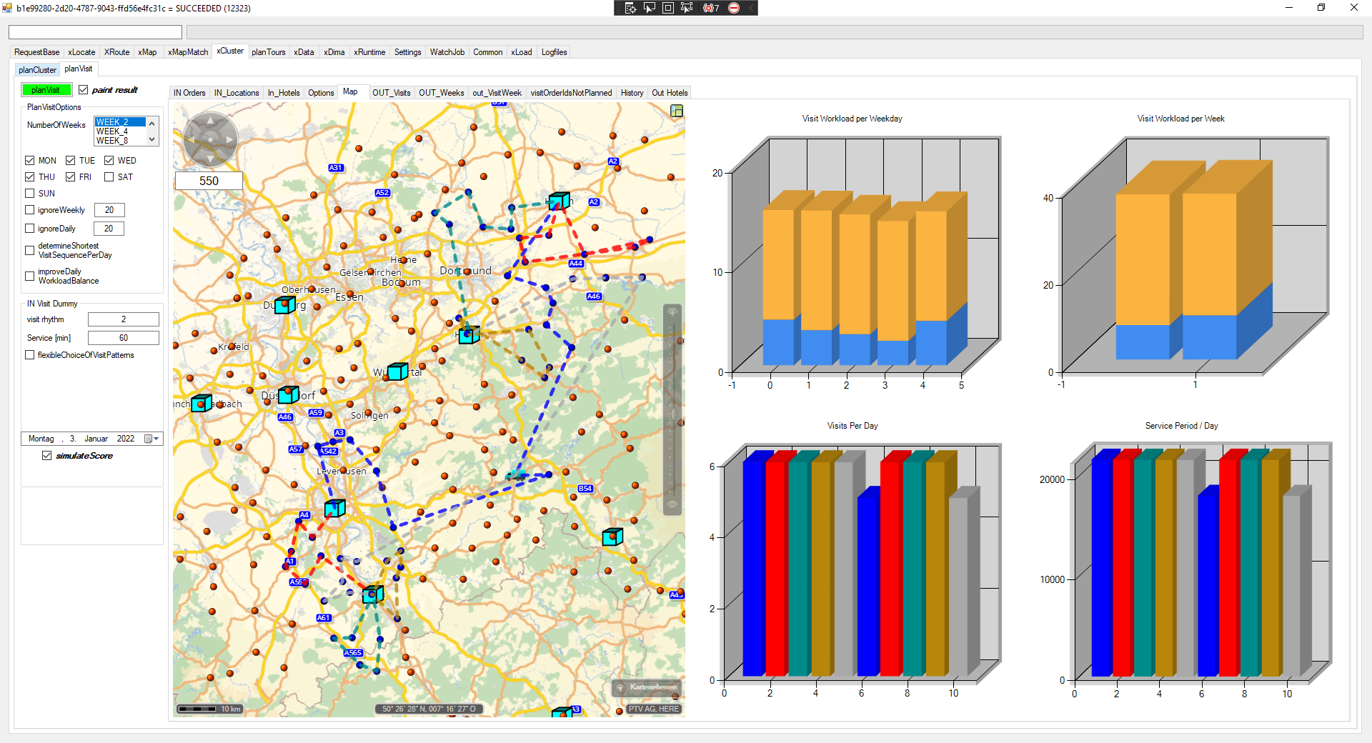 as you may know: we invented a "score" property for a VisitOrder in the xCluster2.planVisits method in version 2.20. Here's just two results that show the impact of the score on a planning.