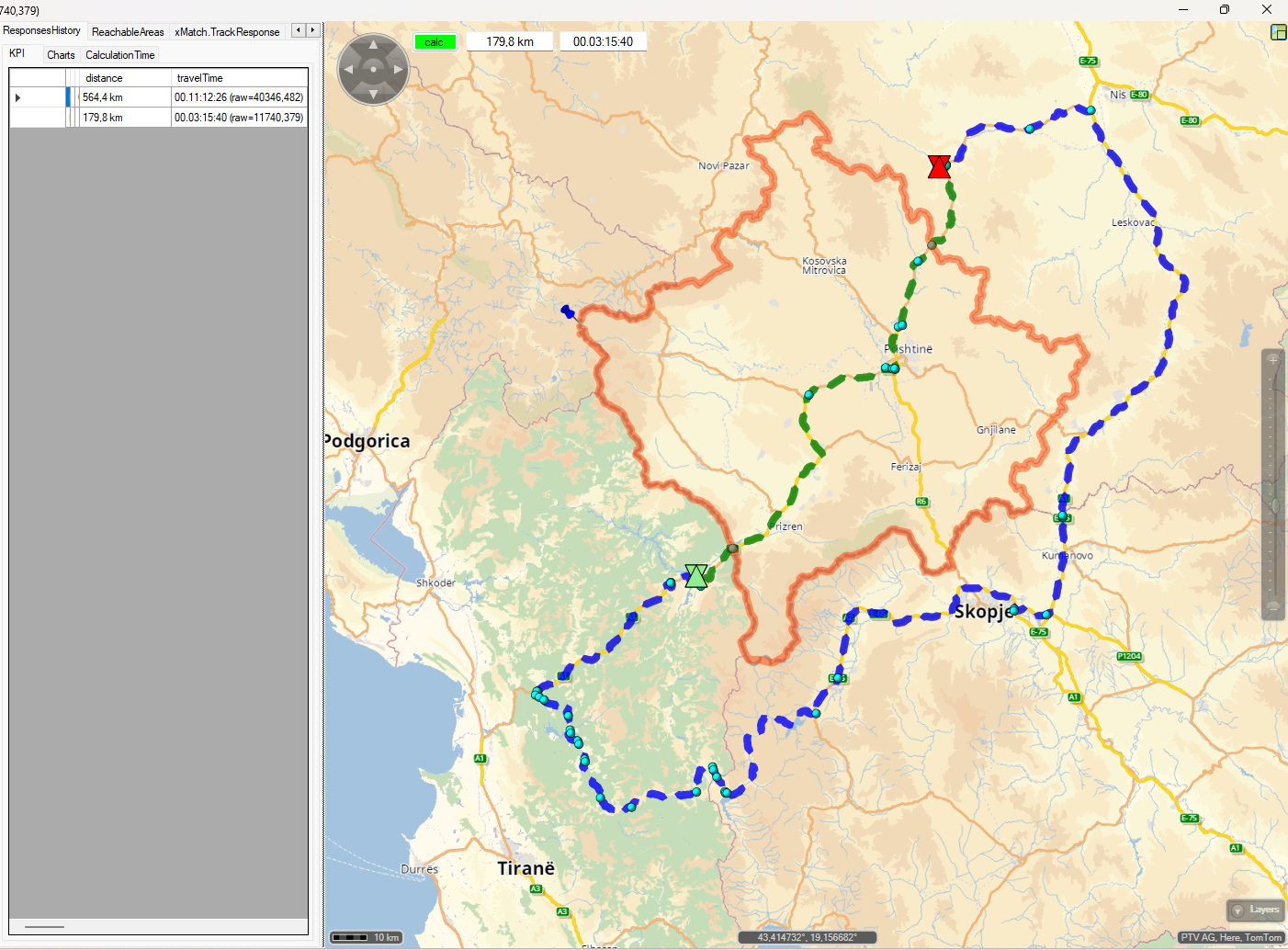 1. We have a route with two stations - both in Serbia. If the stations are close to the border of Kosovo the result route can go through Kosovo. We would like to avoid this because if a part of the route goes through Kosovo, there are some additional requirements by law. Normally, we can force the routing to avoid a country by setting the allowedCountry or prohibitedCountries on RouteOptions.GeographicRestrictions.In case of Kosovo it is not possible because of the country code. For details see https://xserver.ptvgroup.com/forum/view ... 4269#p4269