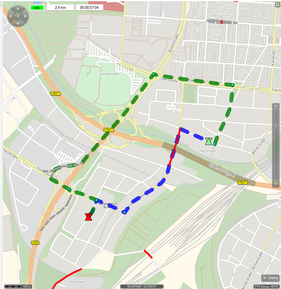 - Request the consideration of the additional data such as the PTV_TruckAttributes through a so-called feature layer theme.