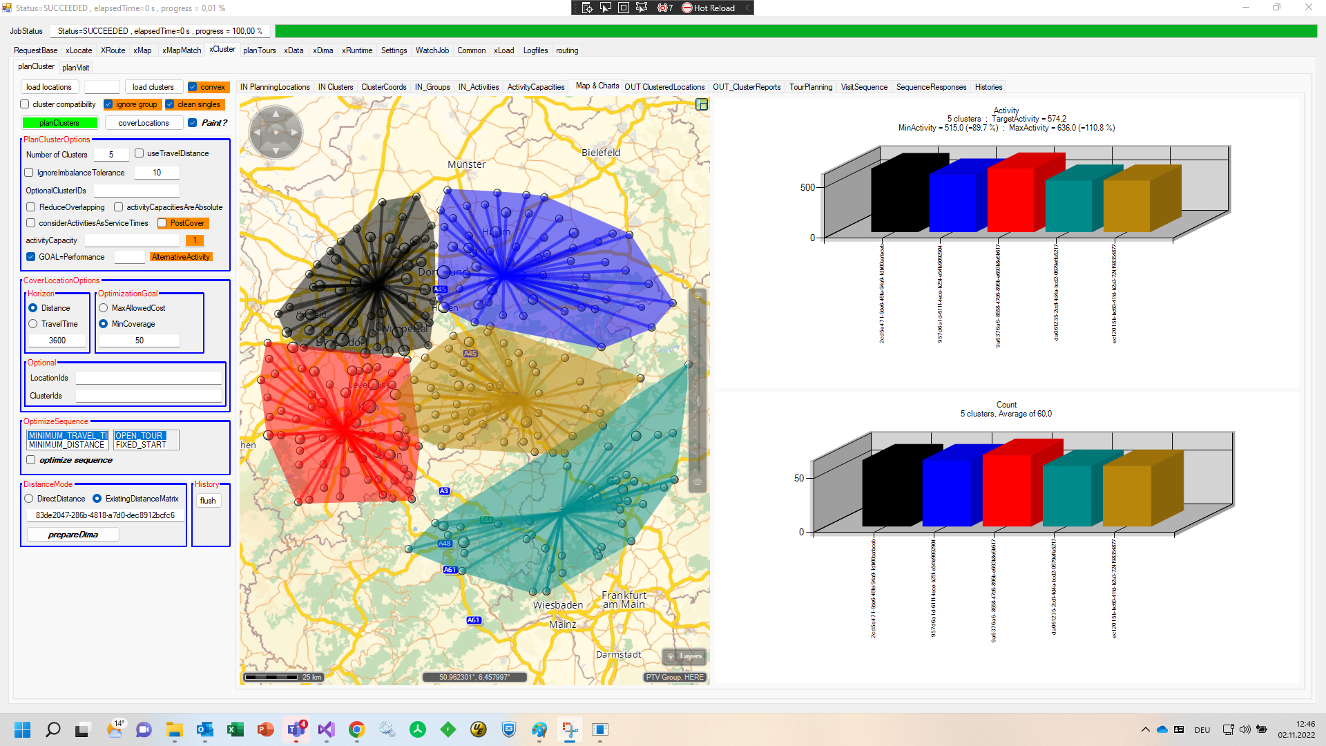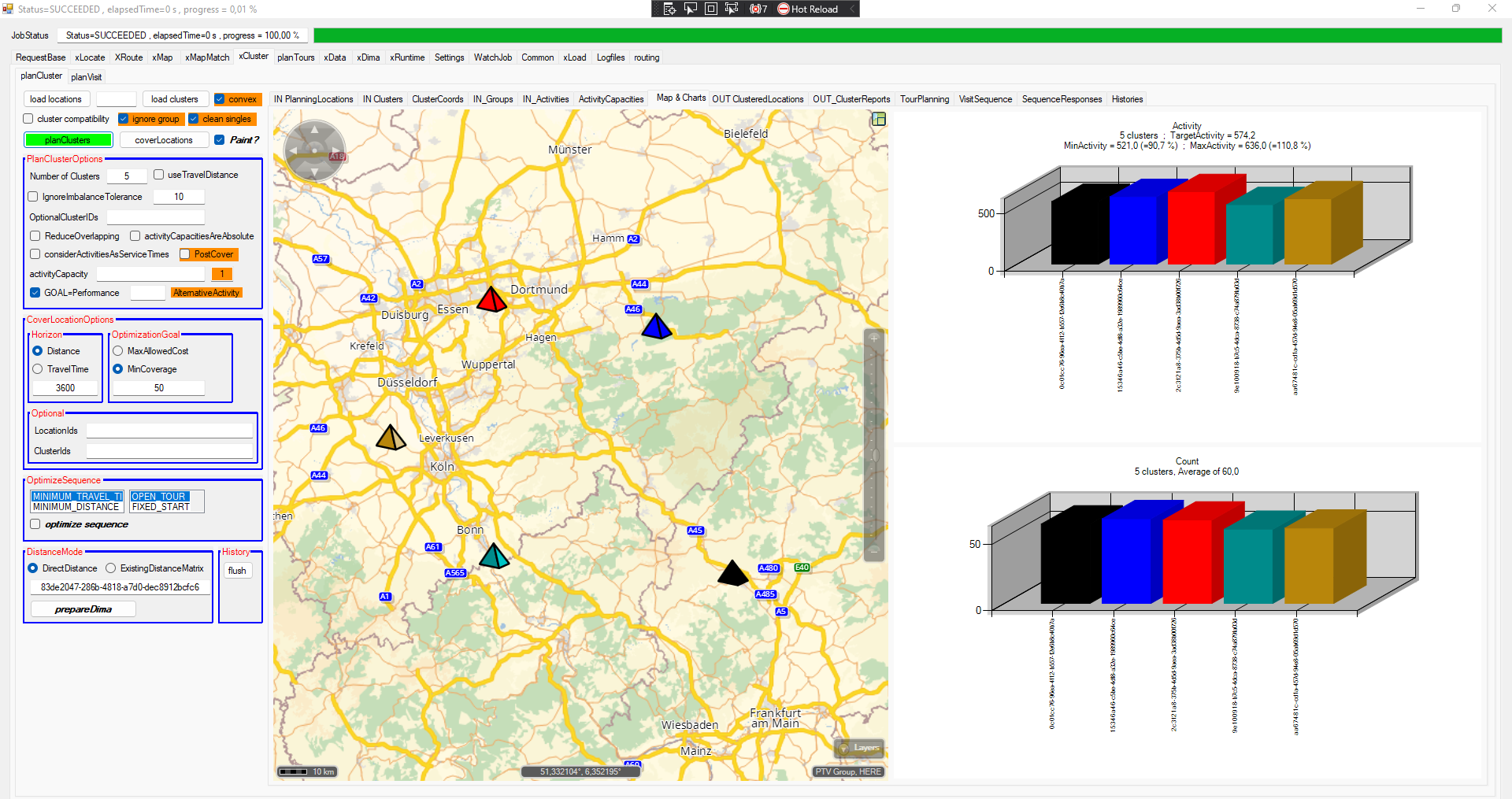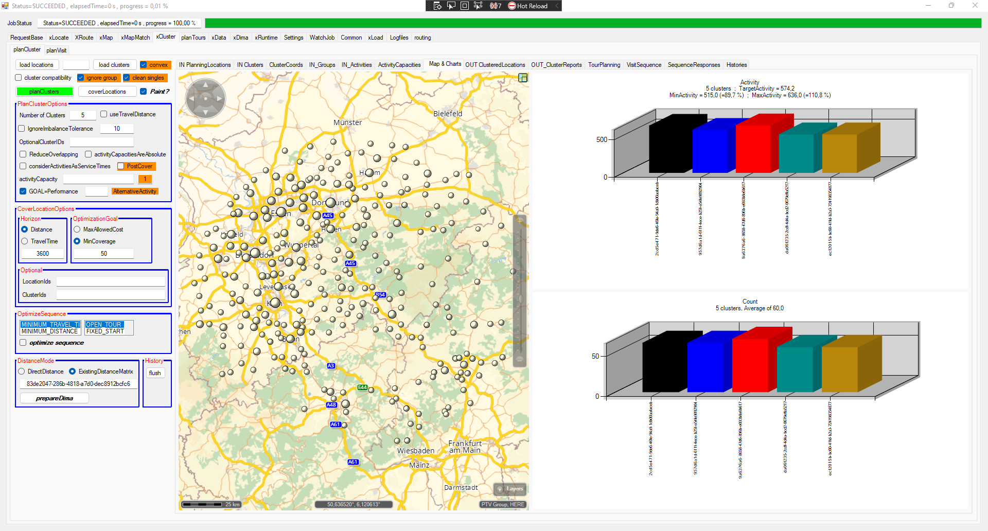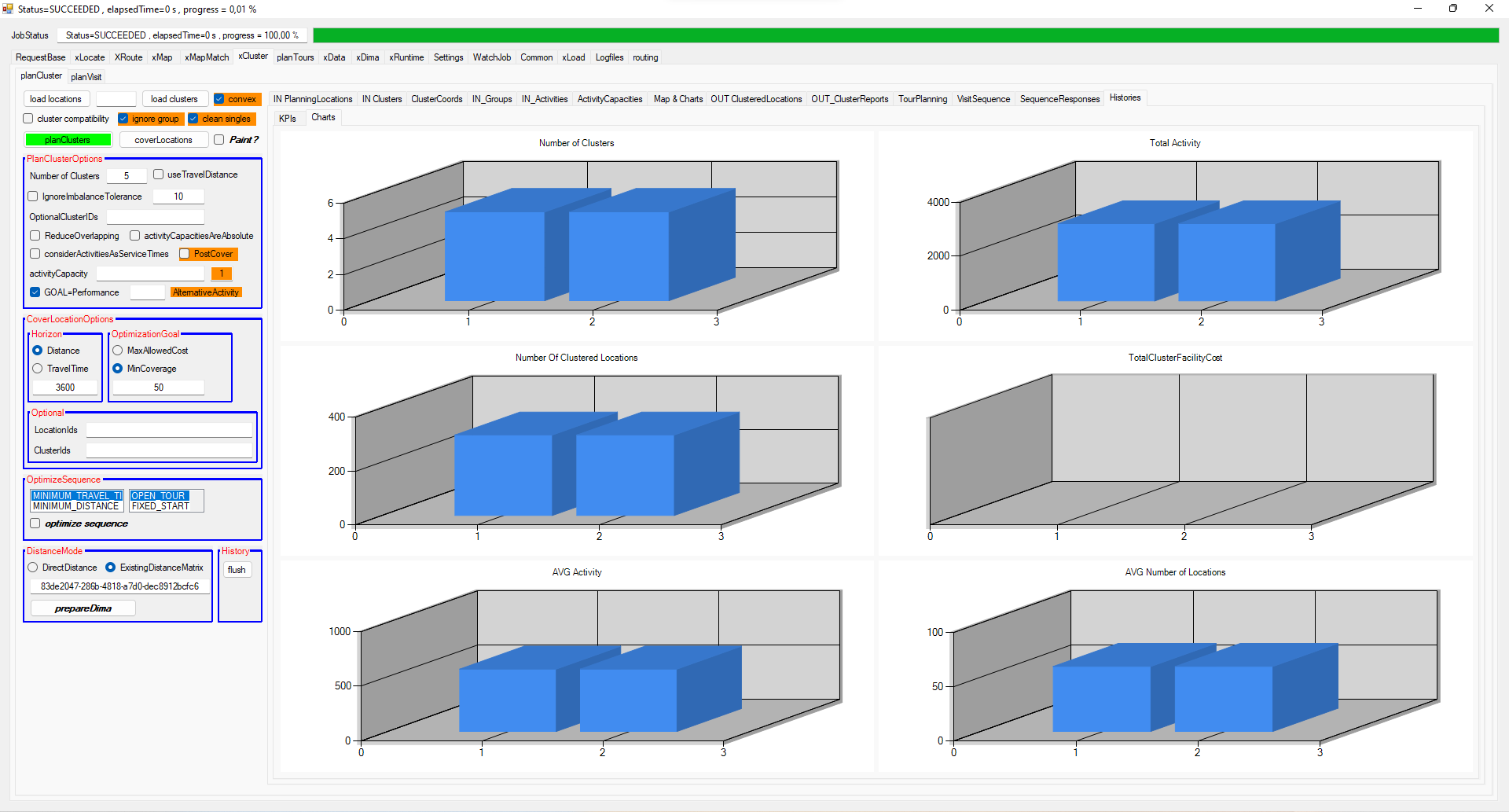 Well, there's a significant difference between the airline and the routing distances. I also created some samples based on same input locations - just the DistanceMode is changed. Both samples have in commonI have a confusion – how beneficial is to use dima in planCluster service? As per my understanding, this service creates territories and just for creating territories how dima is useful? Suppose I don’t want to use estimatedTravelTimeToCluster, then does it make sense to use Dima with planCluster? Because dima is to use calculate driving time and driving distance.