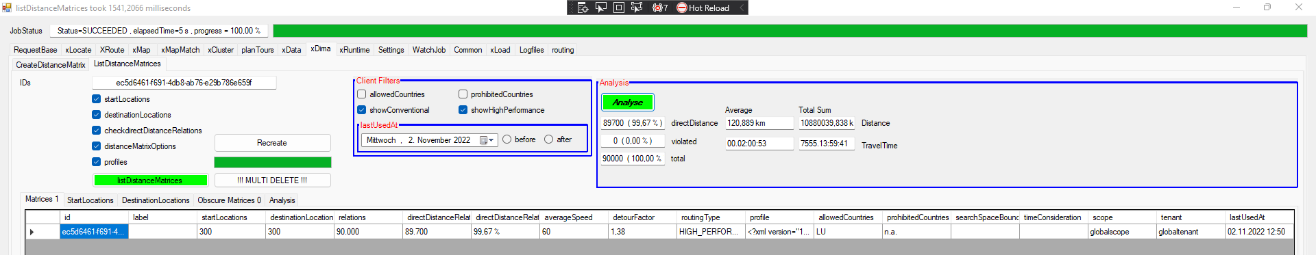 Comparison of the Distance metric KPIs (xDima2)