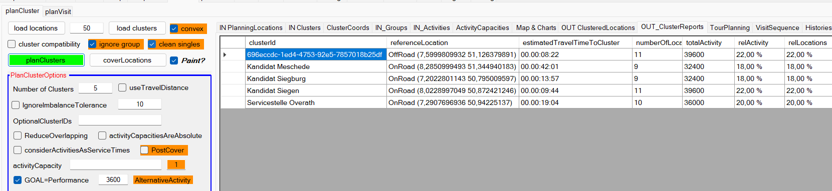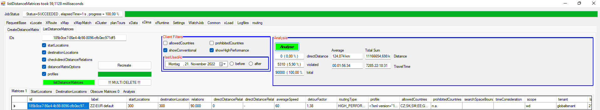 In the next step I computed two distance matrices with 0% and 80 weight between distance and time: