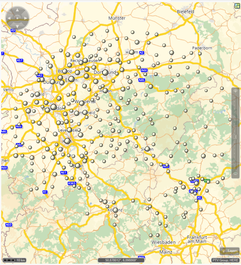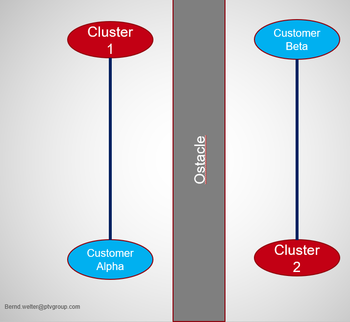 - But if we care about the traveltime (and distance doesn't matter) and the driving speed is fast within one of the two regions "east" and "west" the best assignment is the one displayed in this map.