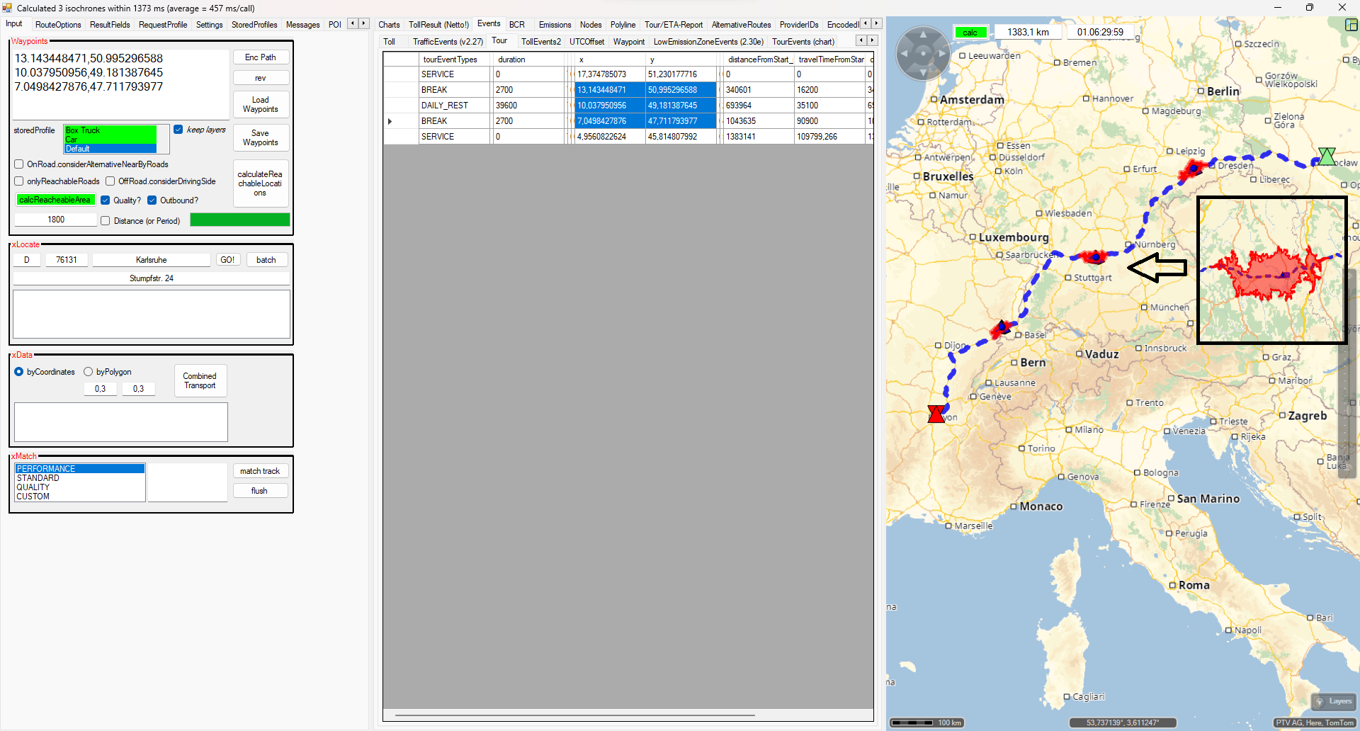 - You need to have a rest in a radius within 30minutes along the route corridor. Unfortunatel the corridor calculation runs into the error described above.