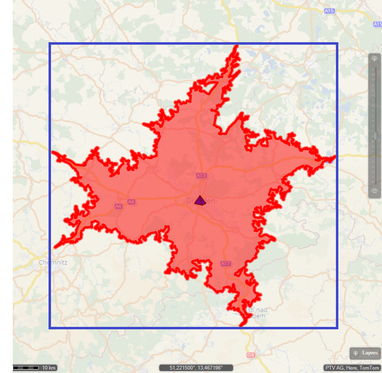 Sidenote: An alternative to the bounding rectangle could be a computed, route base geometry such as an isochrone: