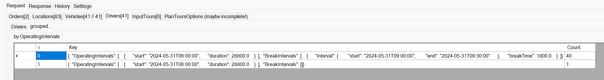 • The two tours I created successfully with a first run and TWO vehicles without break intervals.
