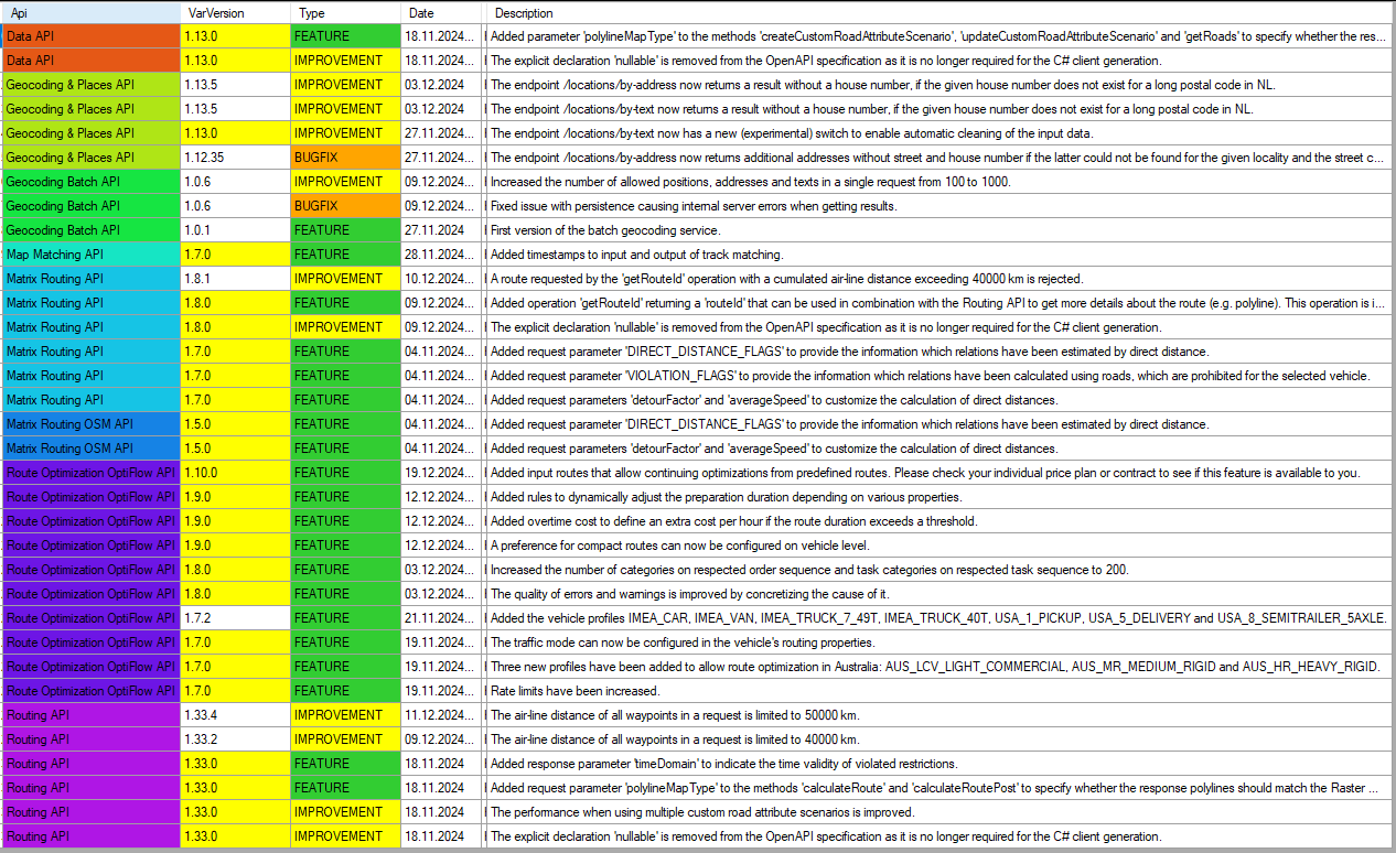 On all Developer APIs, all types (Feature, Improvements, Bugfixes...)