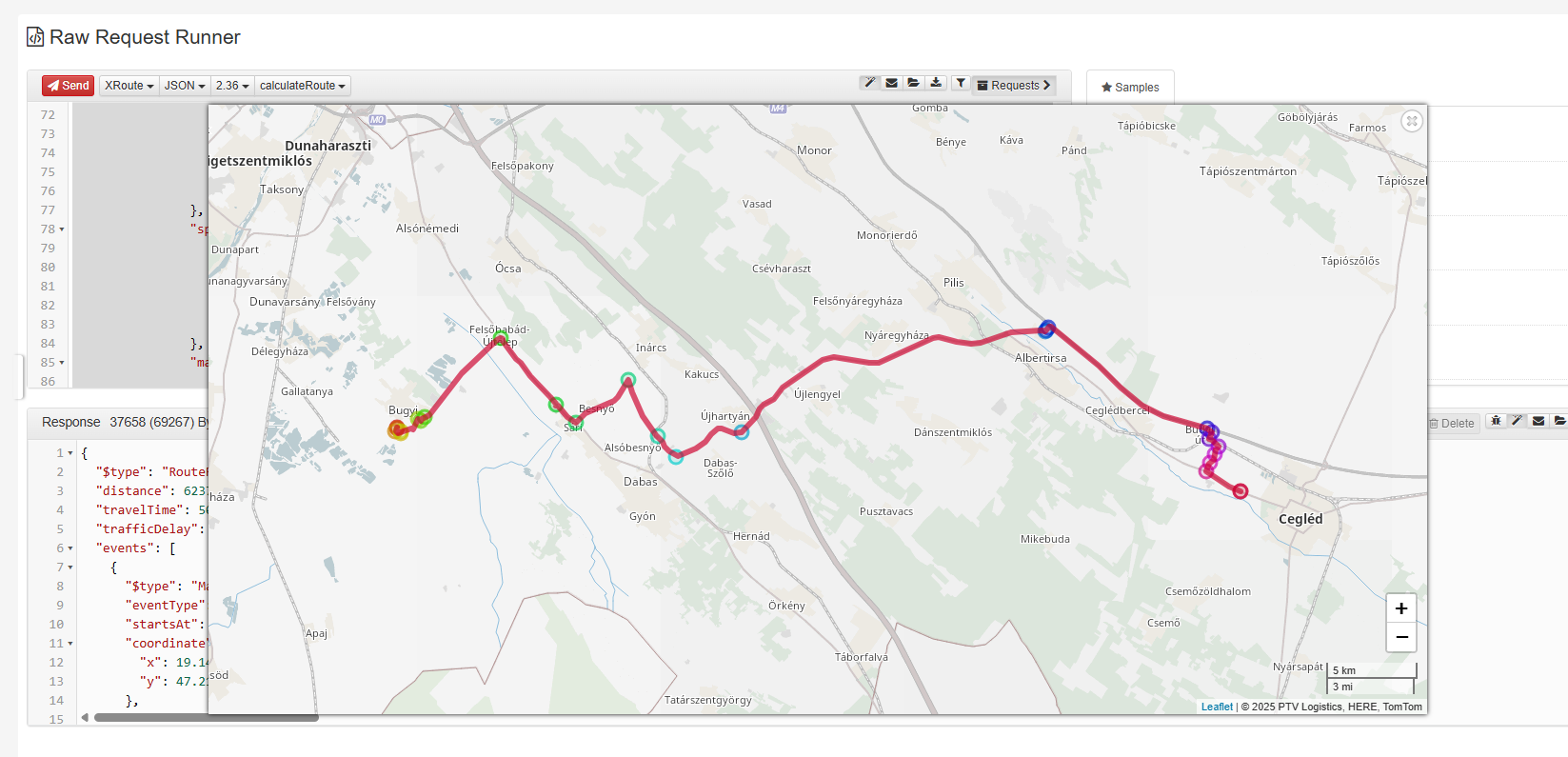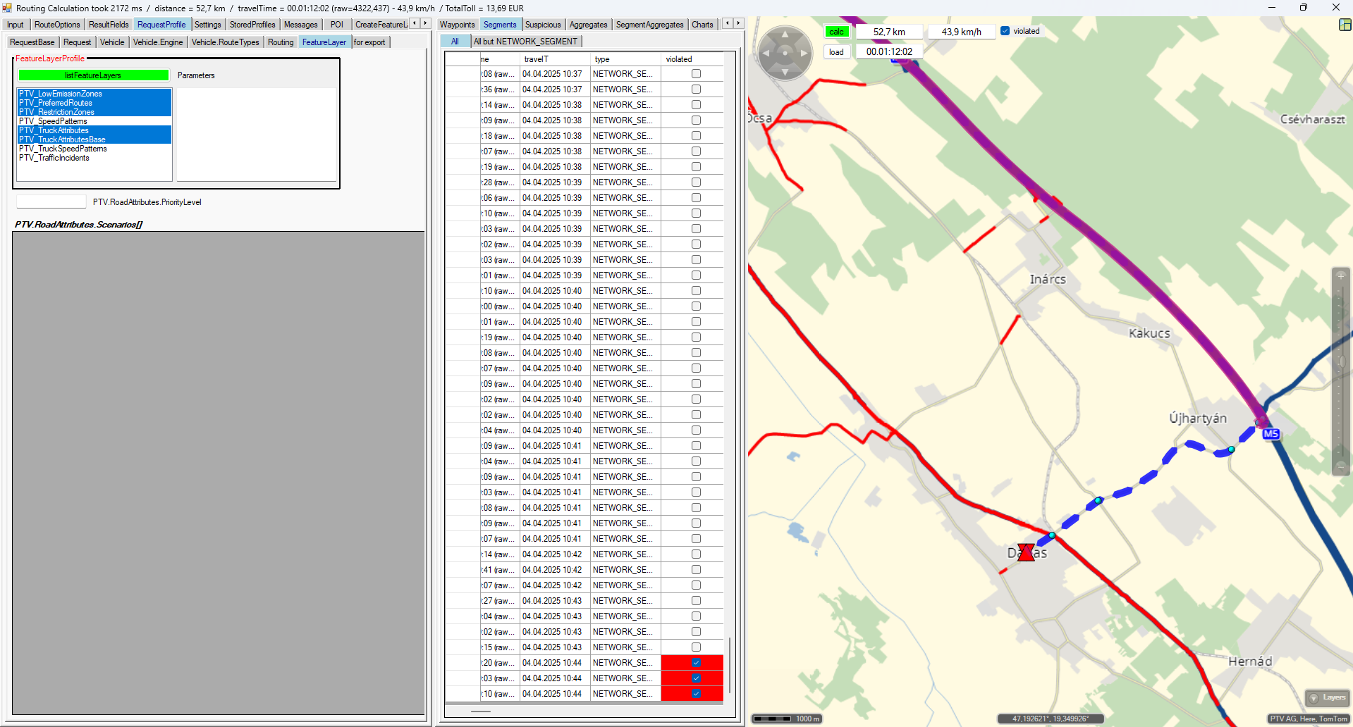 This way, the planner immediately routes through Dabas. Of course, from that point on, it causes serious and unacceptable planning errors along the rest of the route as you described. We’re experimenting too. But this still seems to be a rather difficult problem to solve.