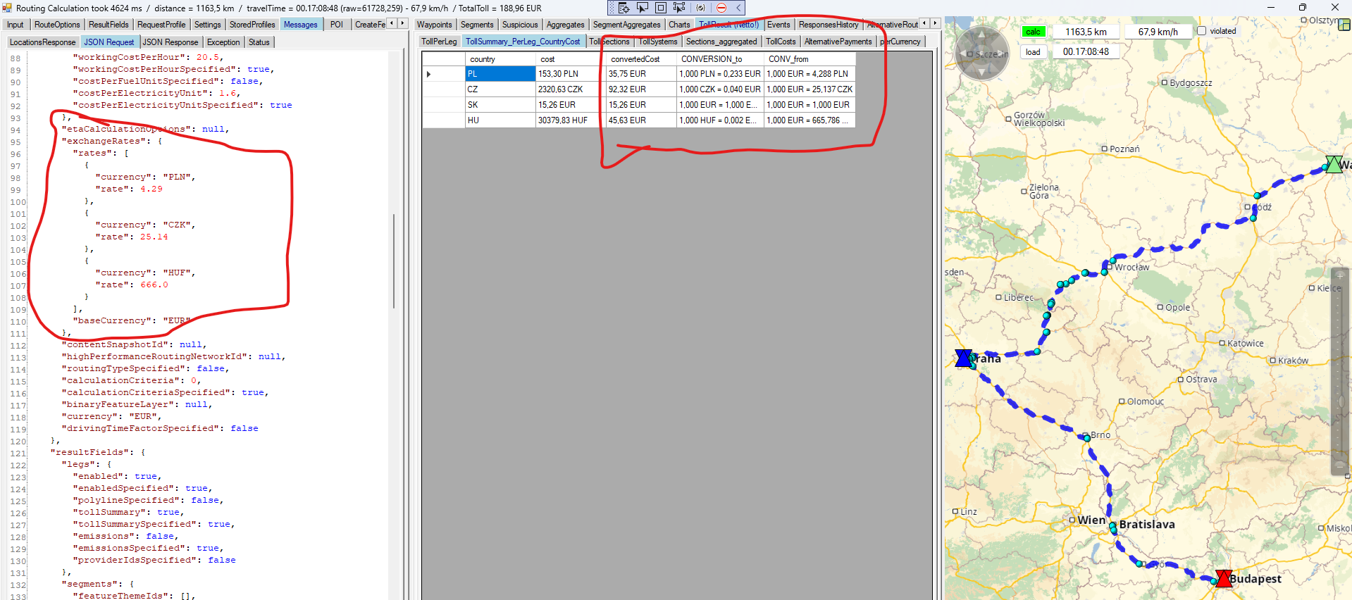 | PTV xRoute 1: users of the xServer1 engine would have to apply their exchange rates on client side because there's not built-in mechanism. | PTV xRoute 2 : supports the Exchange Rates as input parameters which is way more smart : |