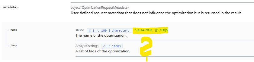 "description": "User-defined request metadata that does not influence the optimization but is returned in the result.",