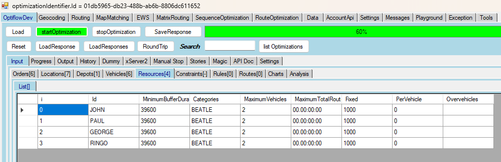 - constraints : Defines constraints on the vehicles and routes assigned to the resource.