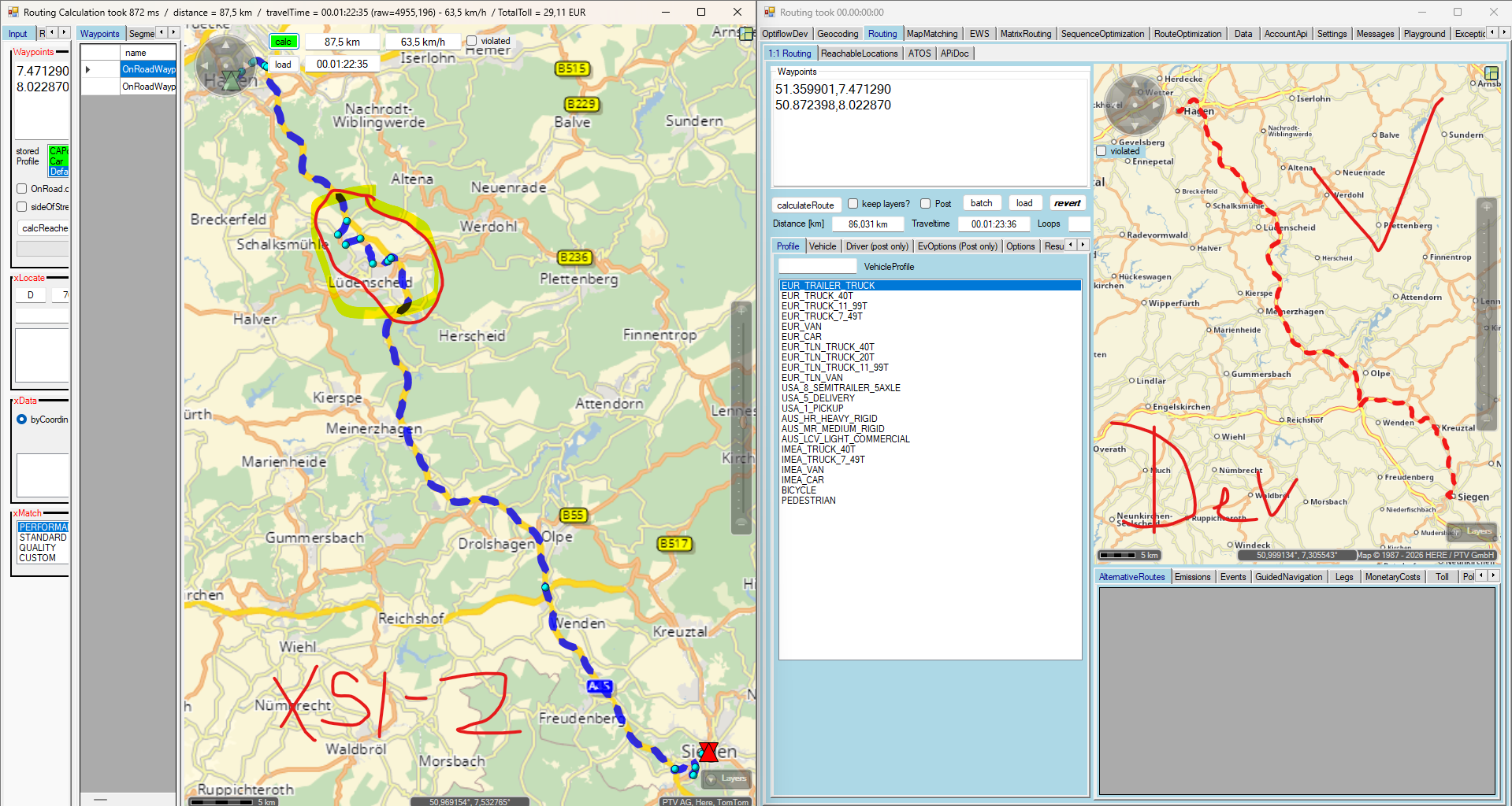 Screenshots provided through test applications. Left: PTV xServer Internet 2 (update not applied yet, 8.1.2026) Right5: PTV Developer: update applied and layers will be enabled under the hood ;-)