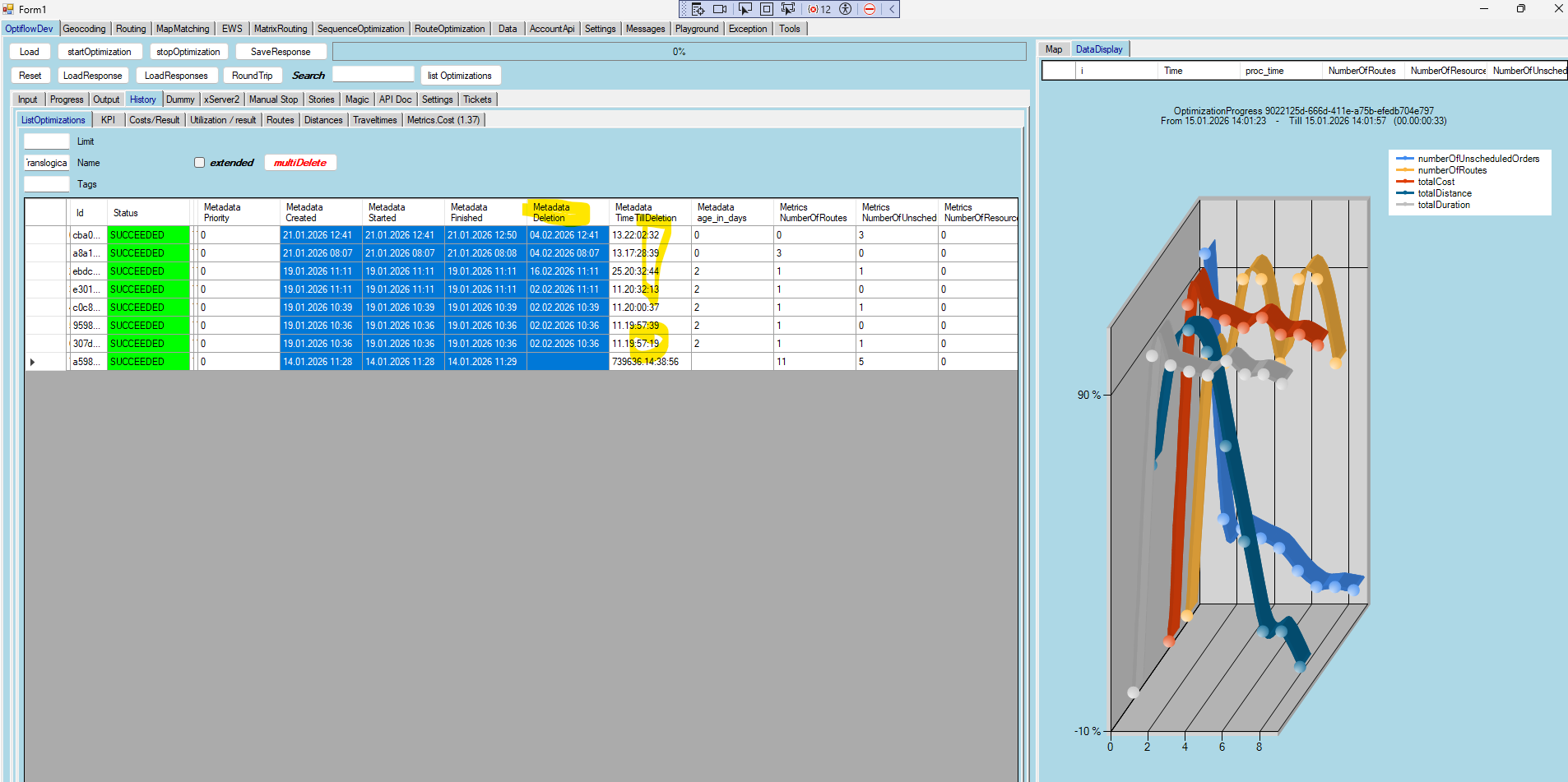 - This is still the default behaviour if you do not specify the deletion date during the startOptimization.