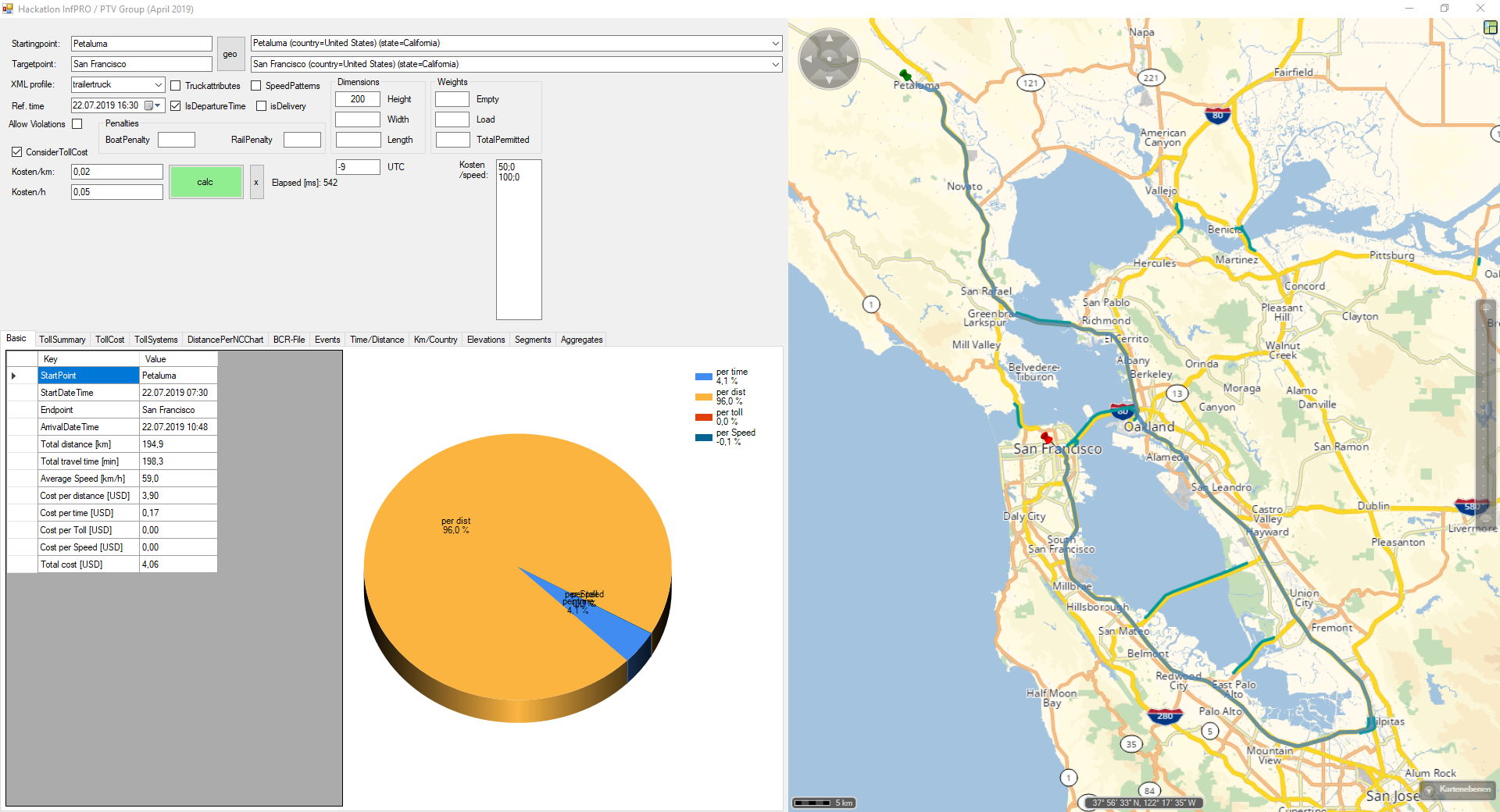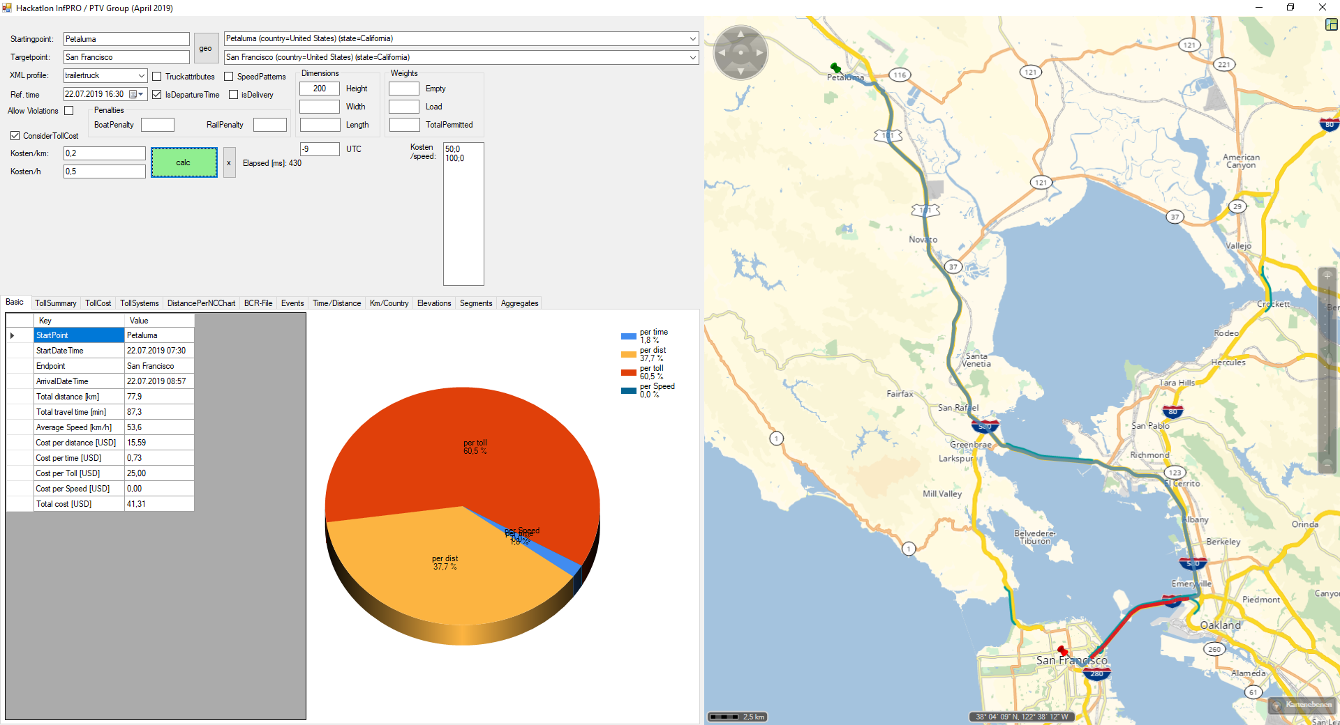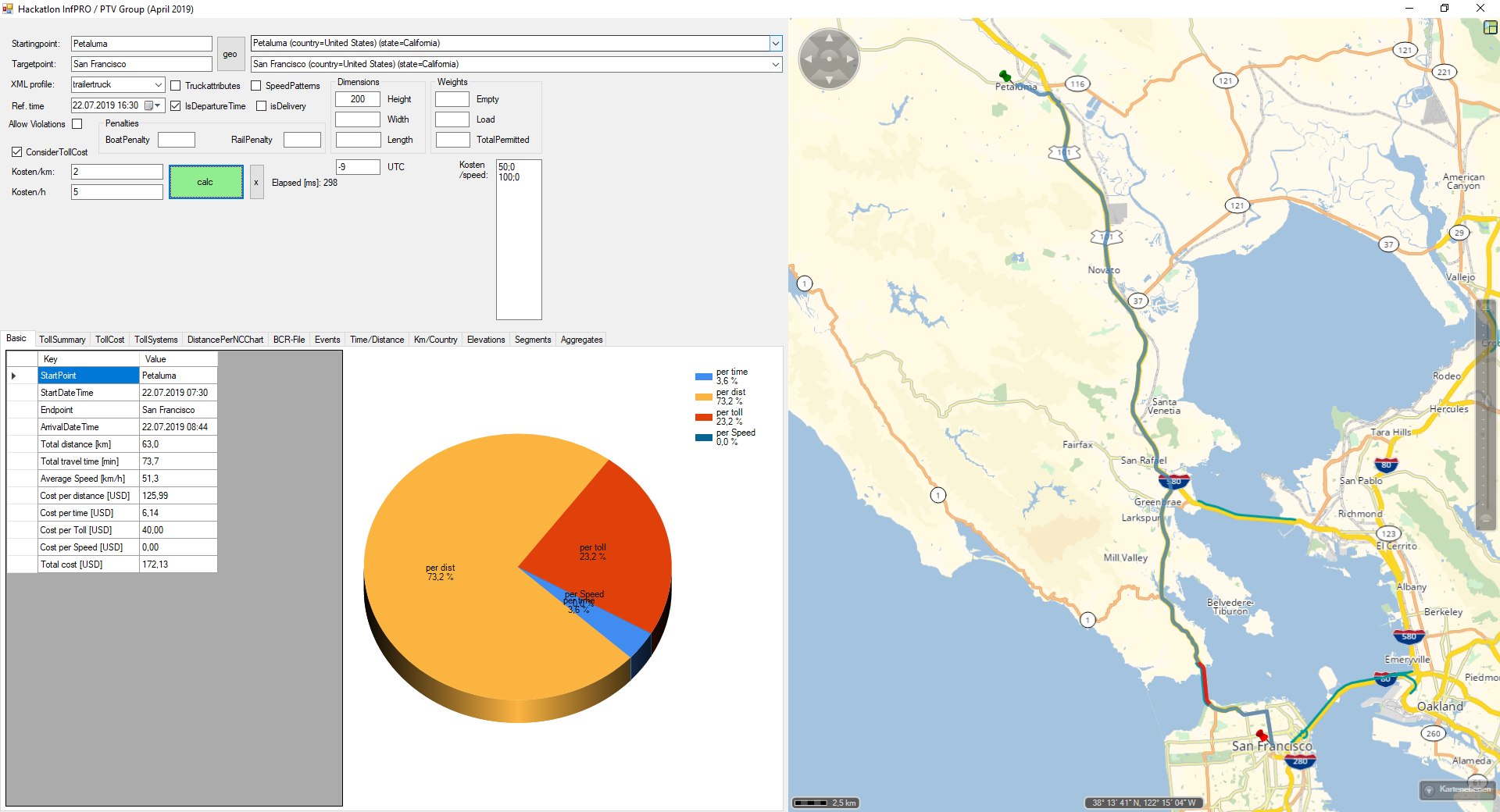 - Price per kilometer and Price per hour are expensive. Therefore the router looks for a short/fast track and is willing to pay the 40 $ for the Golden Gate bridge