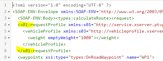 Invalid content was found starting with element 's01:requestProfile'. One of '{requestProfile, geometryOptions, timeouts, userLogs, waypoints, routeOptions, resultFields}' is expected.