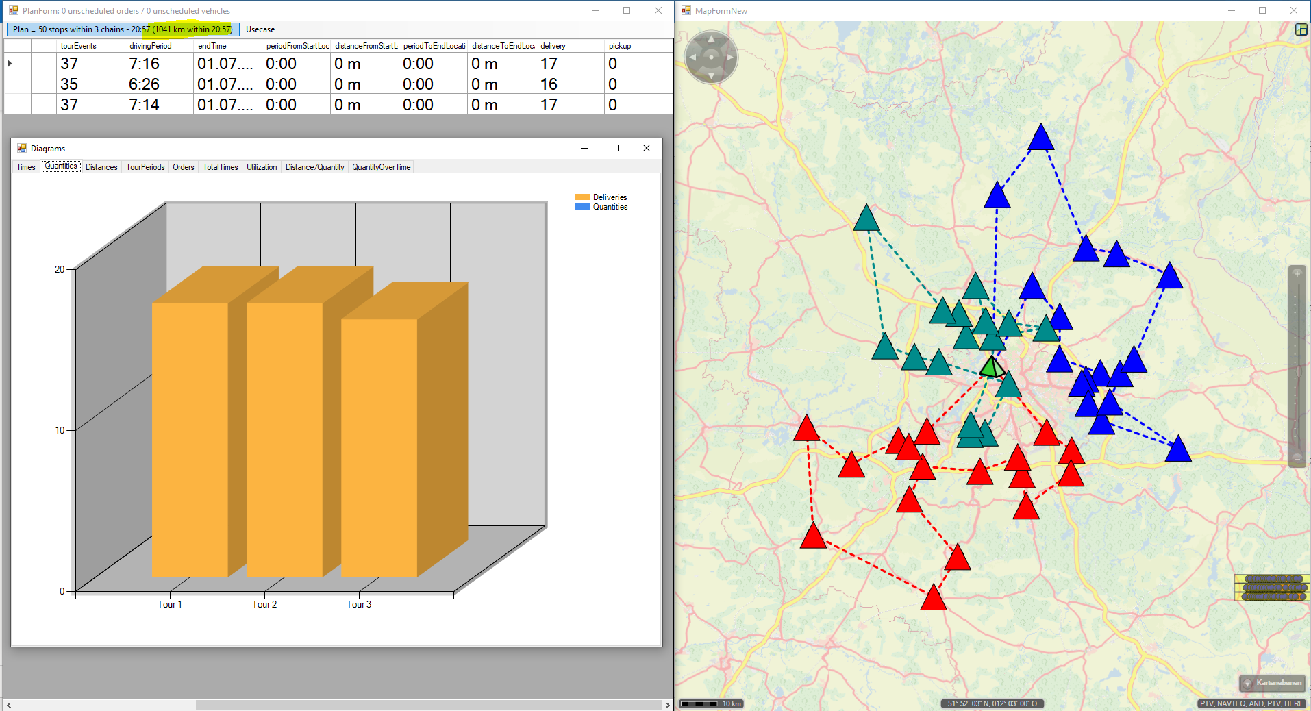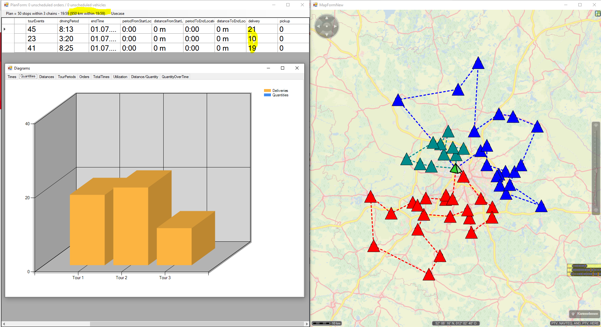 The requirement reminds me of the BalancingParams that would be available in xTour 1 but the question is: how to apply this in xTour2? Well: I could imagine to proceed as follows - at least if some boundary conditions are fulfilled:I have another question. We are interested in the equal distribution of orders (due to the weight) between vehicles. For example, we have 2 cars and 5 points to visit. In response to our request, we get one route visiting 4 of them (12xx kg) and one going only to one point (5xx kg). We would like the weight of both routes to be as similar as possible. What should I control to achieve this goal? I am enclosing an example of a question and answer. Thank you in advance for your answer.