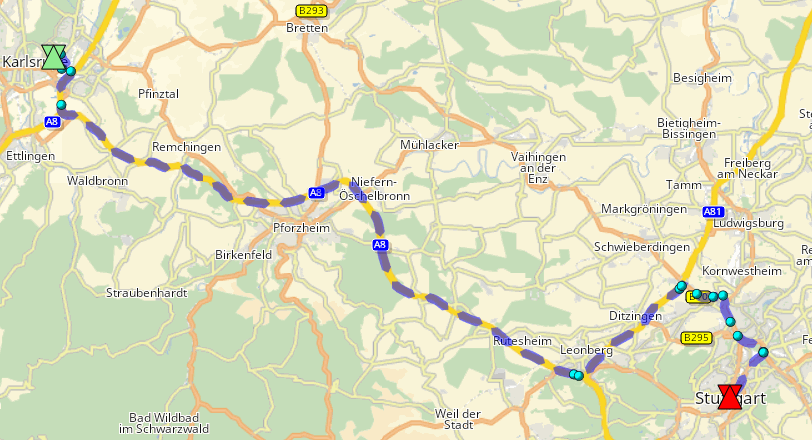 // now use the point collection MapPolyline mp = new MapPolyline() { Points = pc, MapStrokeThickness = LINEWIDTH, Stroke = System.Windows.Media.Brushes.Blue, Opacity = 0.5, ScaleFactor = 0.1, StrokeLineJoin = PenLineJoin.Round, StrokeStartLineCap = PenLineCap.Round, StrokeEndLineCap = PenLineCap.Round, StrokeDashCap = PenLineCap.Triangle, StrokeDashArray = new DoubleCollection { 2, 2 }, IsHitTestVisible = false, ToolTip = "Route" }; - Connect the polygon object to the storyboard's animation and start the animation: