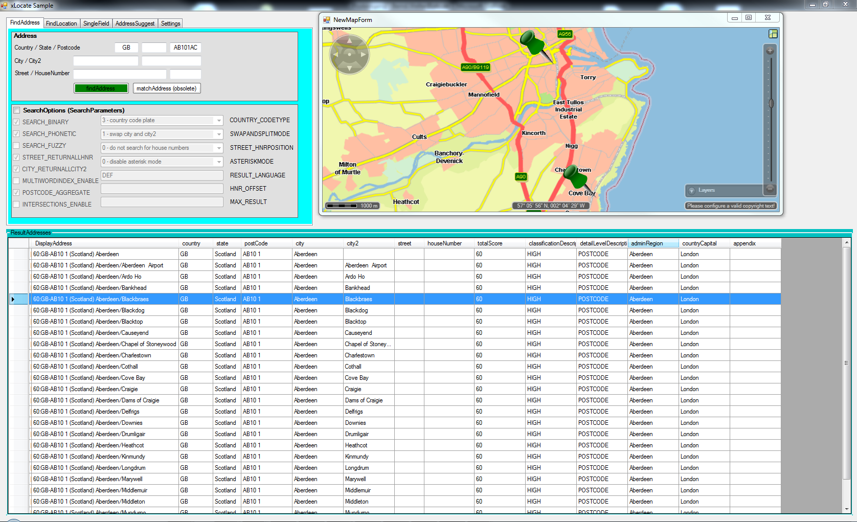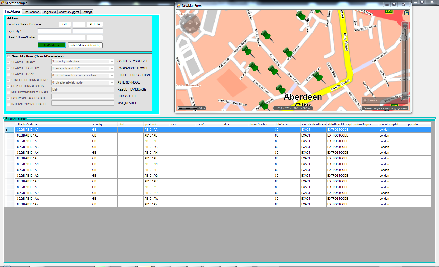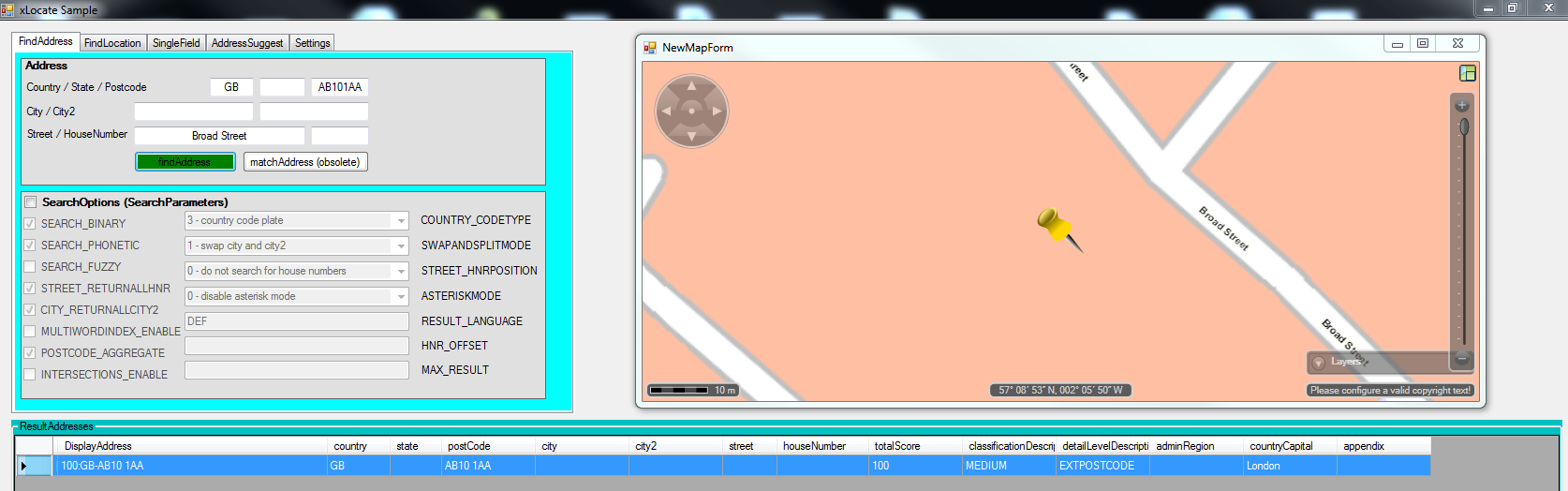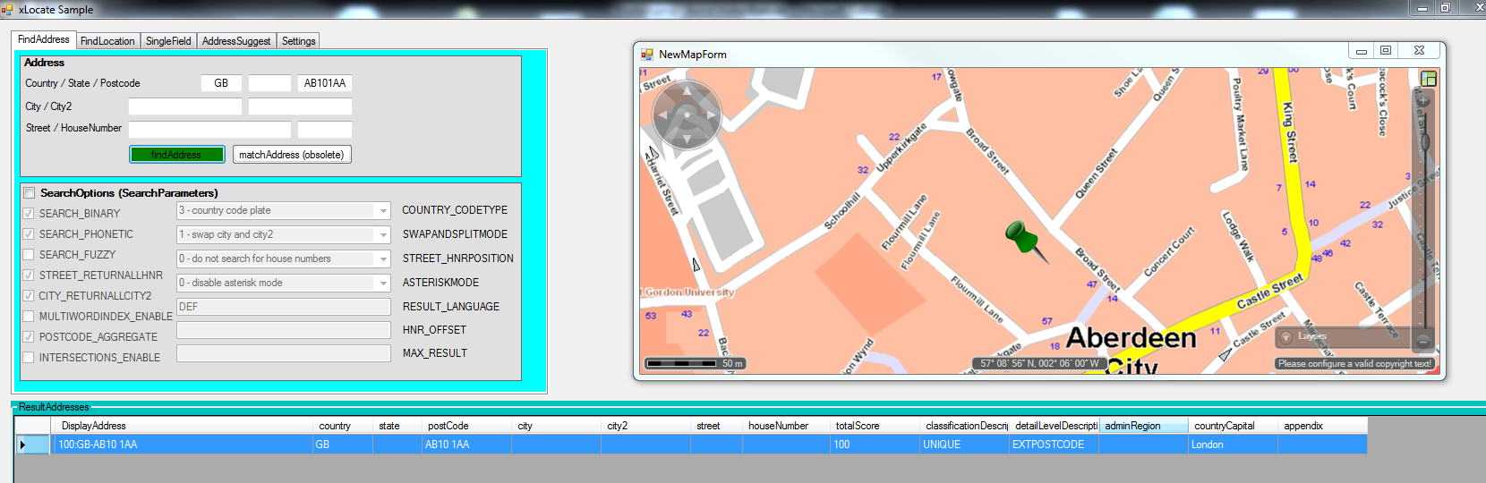 Extended postcodes are used only in the town and singlefield searches. The input is scanned for possible long postcodes which are then used to search for exact matches in the extended postcode database. Note that only the postcode is used to find the results, all other input words are ignored.