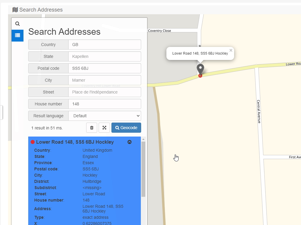 All testing with UK postCode of 'SS5 6BJ' and houseNumber 148