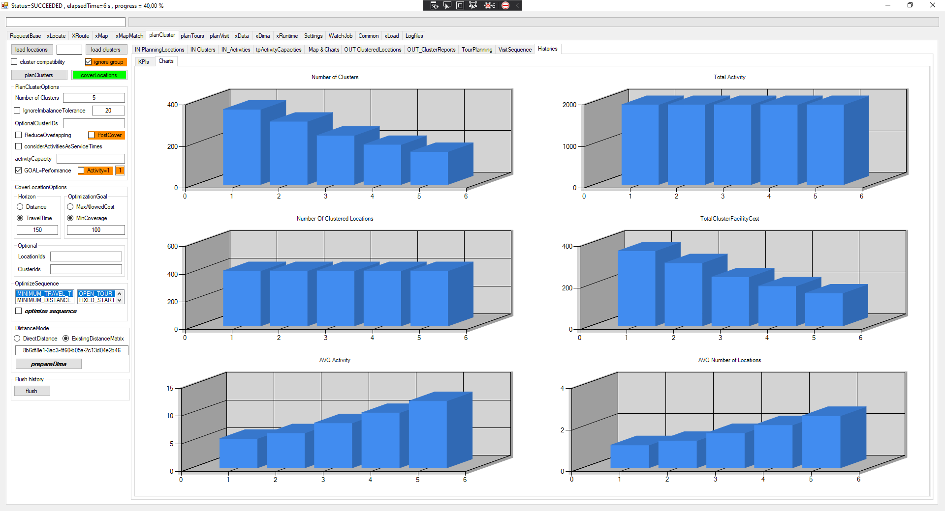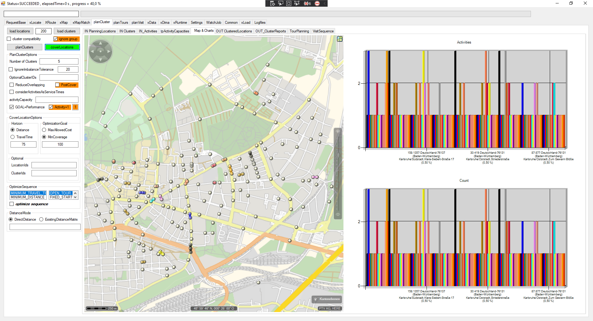 • CoverLocationOptions I have chosen a DistanceBasedHorizon (75m - 150m - 300m) but you can also use a traveltime based approach such as (1min - 3min - 5min) depending on how much time you would need for a single parking process. Furthermore I've applied a MinimumCoverageGoal of 100% - this is needed because we want to visit all the orders