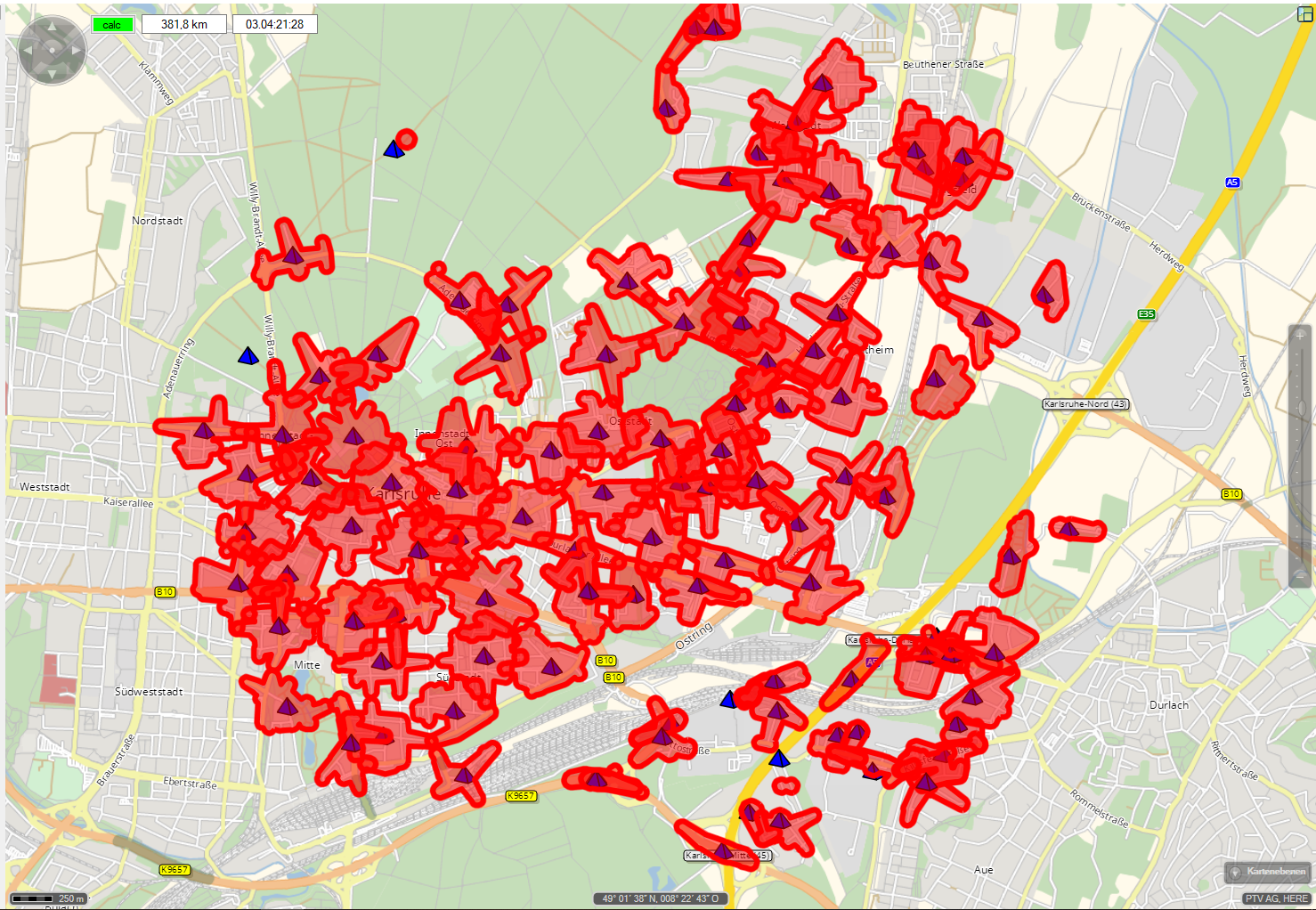 • Imagine to perform a tour optimization based on the output of those clusters. Of course you could reduce the 200 "orders challenge" to a "50-60 parking events in a row" challenge. But what is not guaranteed is that parkings in the same street have to be visited within the same transit. In some cases the tour optimization would visit one of the "parkings" on the beginning of a tour while it's "neighbour spot" is handeled at the end of the tour.