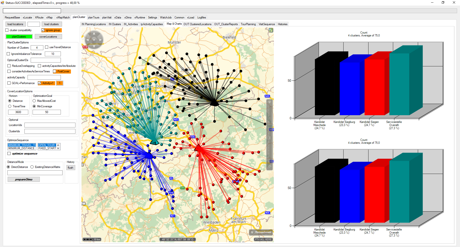 This feature can be used only when clusters are specified. If set to true, activity capacities are taken as absolute upper bounds for specified clusters according to their input sequence. The parameter imbalanceTolerance does not play any role. This means, it could happen, that a planning location remains unplanned in the end. Furthermore, it could happen, that a cluster facility is not allocated to any planning location, i.e. the respective ClusterReport.numberOfLocations is zero and the respective ClusteredLocations.locationIds is empty.