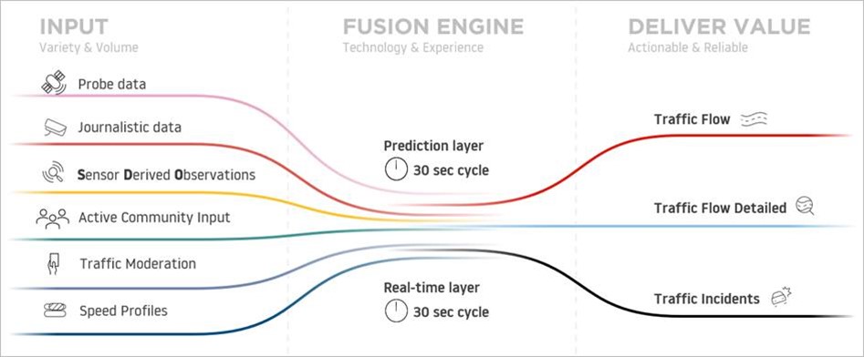 I hope this gives a clear and understandable overview of our process and what we use to trigger our traffic data.Input Data / Floating Car Data (aka FCD)
