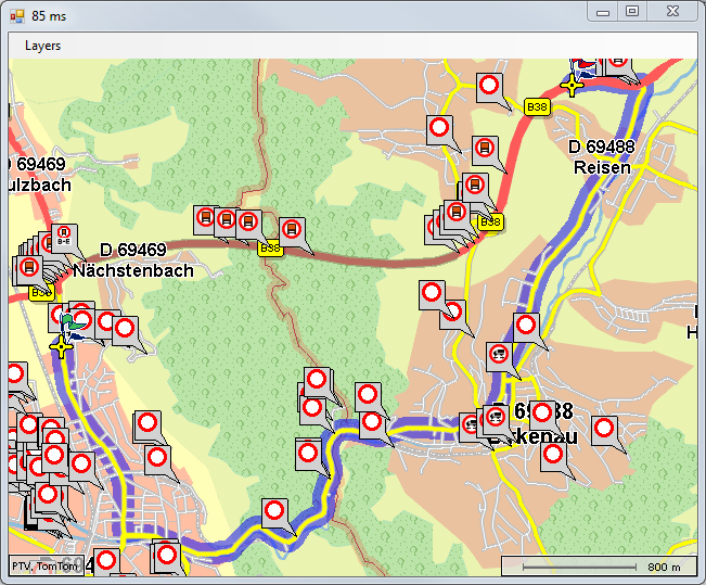 Here is a quick sample that demonstrates the usage. Let's start with the default route through a well known tunnel in Germany: the Saukopftunnel... near the western part of the tunnel you can see the tunnel code icons.