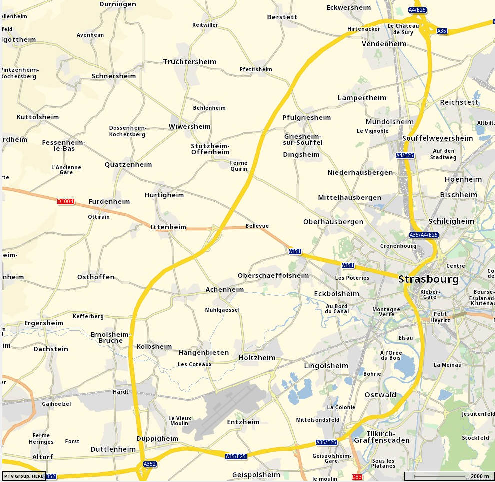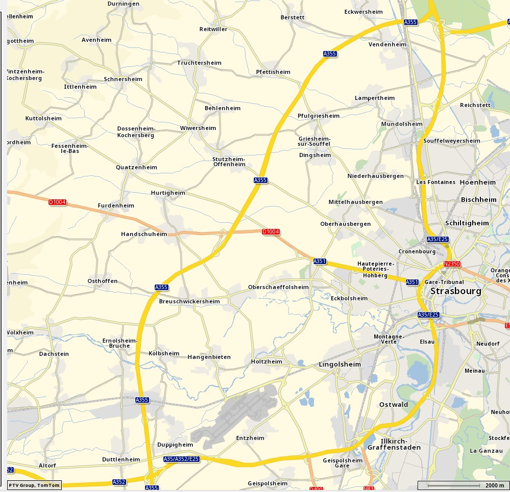 I am getting asked for a highway which doesn't appear in several parties maps: The highway A355 near Strasbourg (also known as the "contournement Ouest de Strasbourg" aka "Grand Western Bypass").