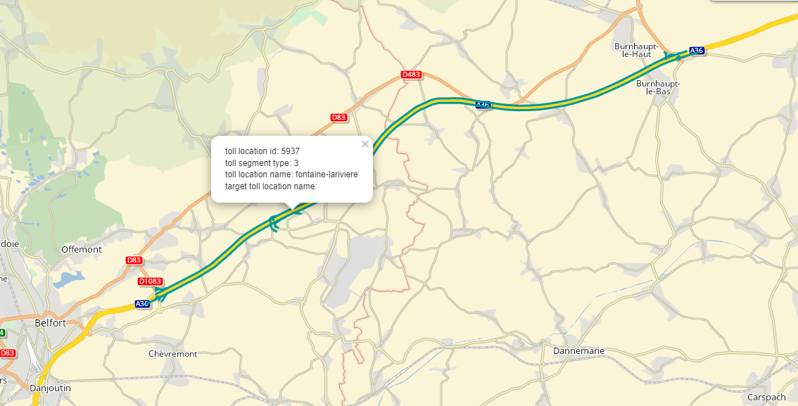 With this snippet i get 88.6km toll distance in france. But in real it must be around 152km. Can anybody help me to get a functional calculation based on the attached response?