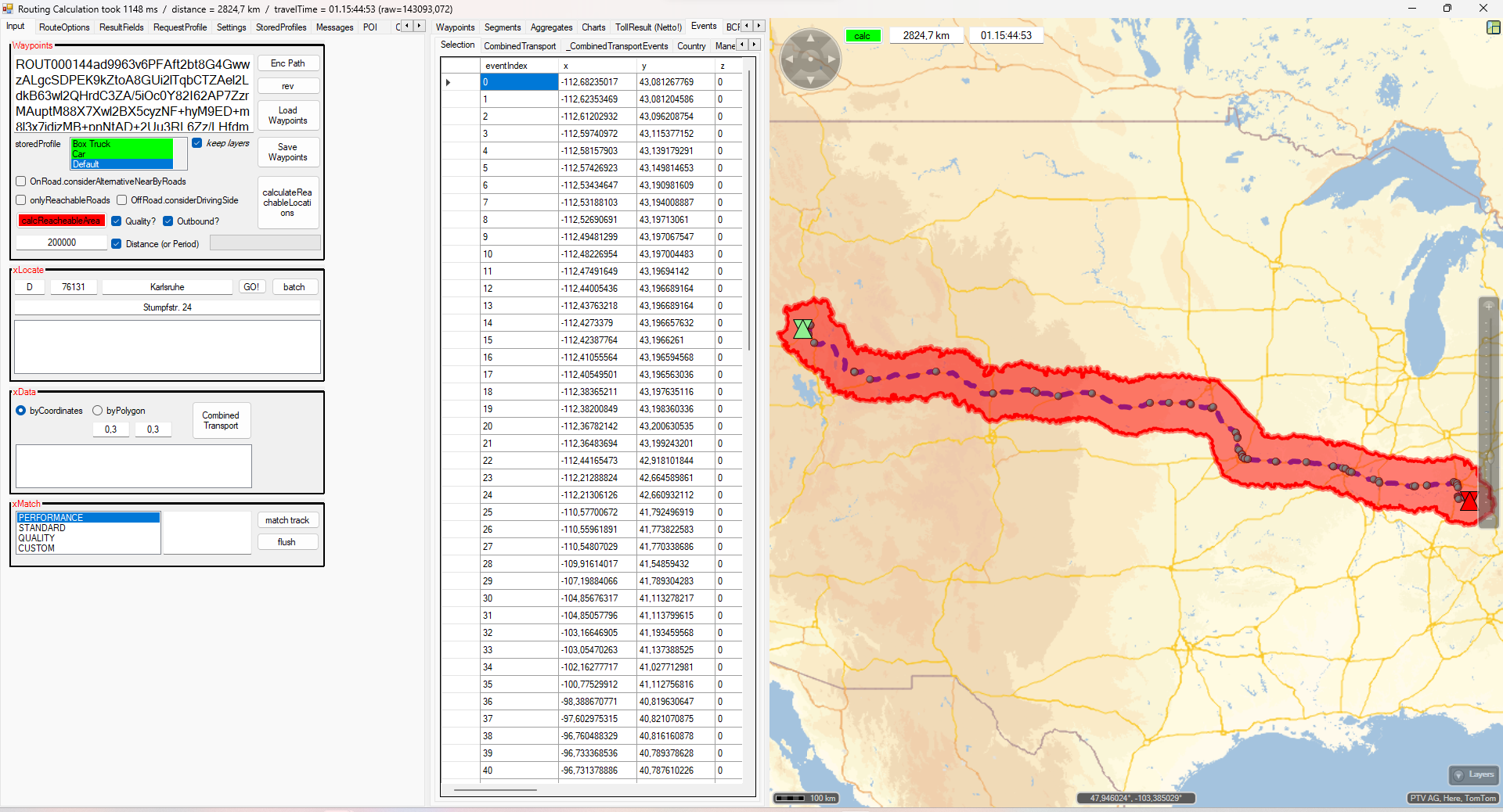 - Imagine you are returning from a long distance trip with an empty vehicle. At that stage you already know the distance and traveltime of the blue relation based on a distance matrix or 1:1 route. Let's call these KPIs the "reference" for the next steps.