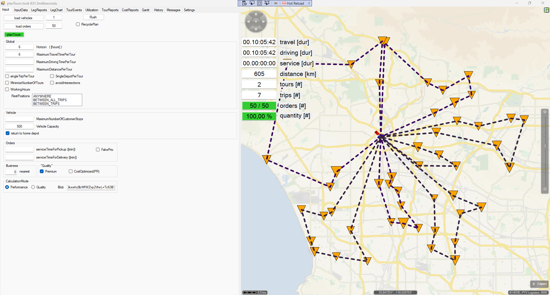 - Then I used the output plan as input plan for a planning with AlternativePickup and allowed each available location as refill location