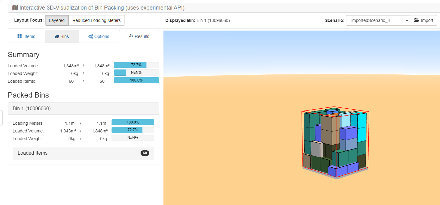 This is a result of dummy data of a single bin planning: