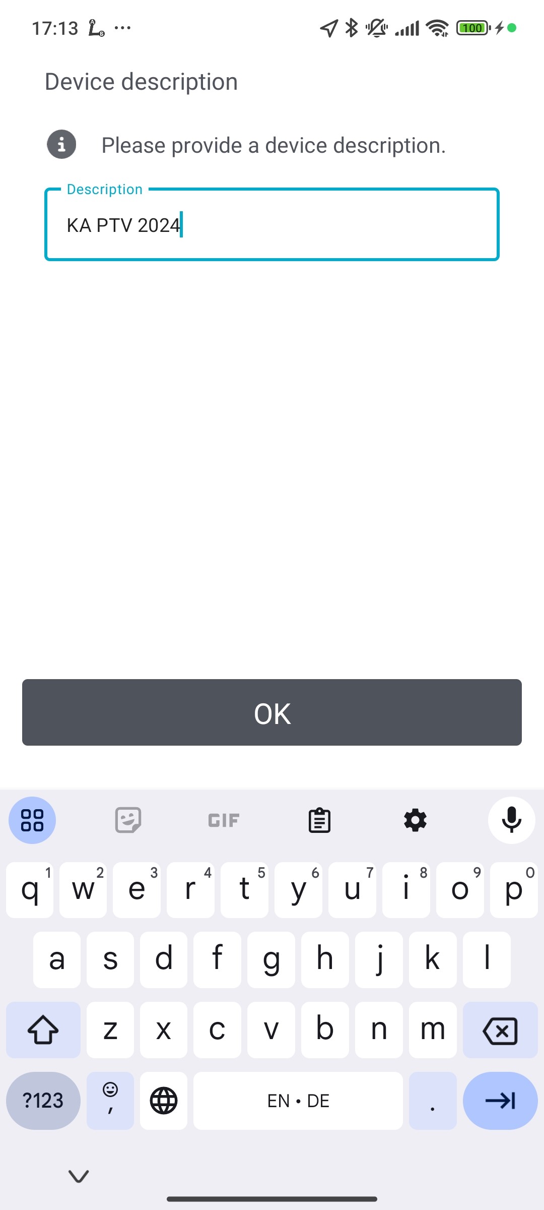 • Request a device description from the user during setup. The option is displayed after logging in with the license key.