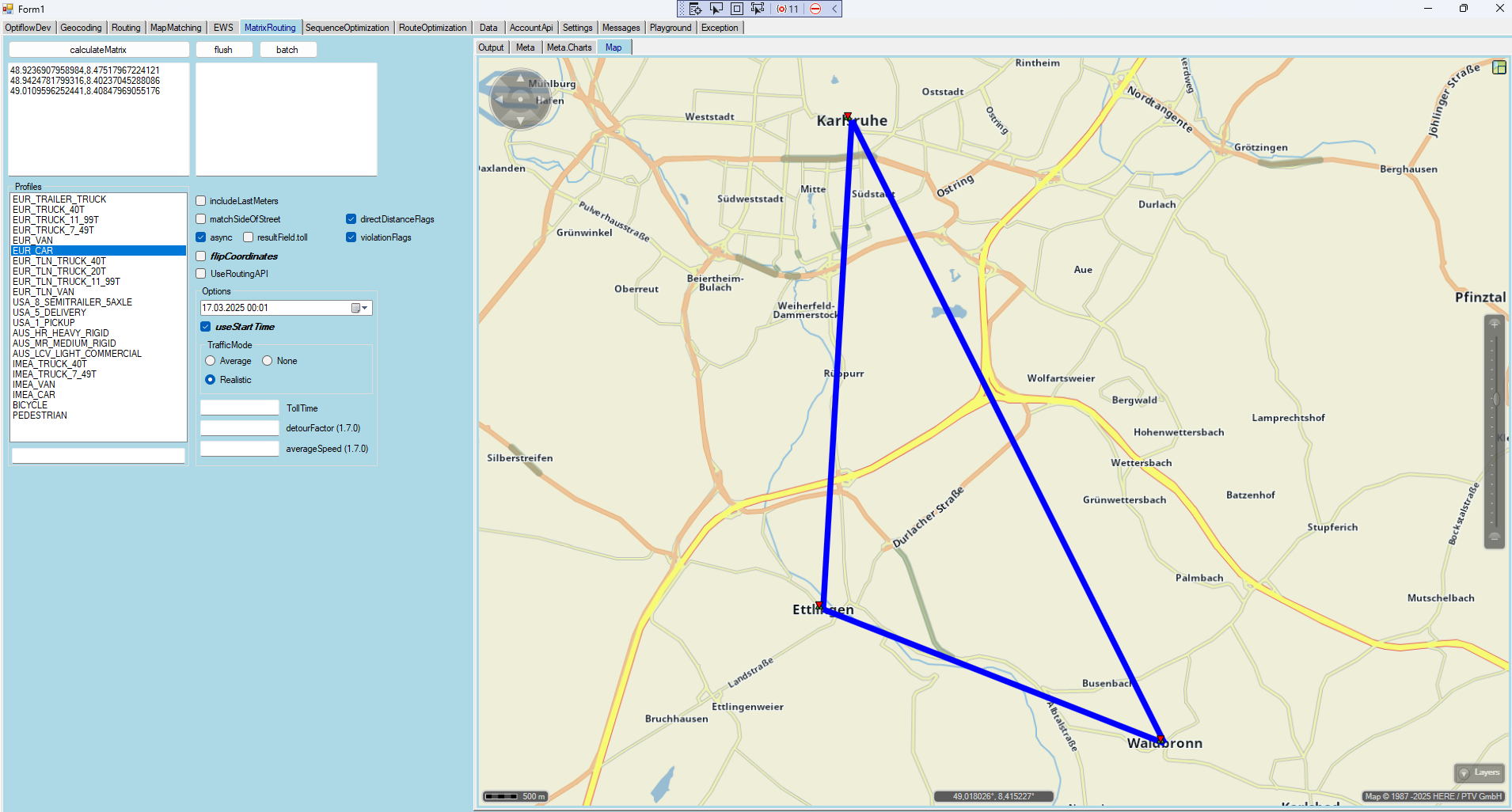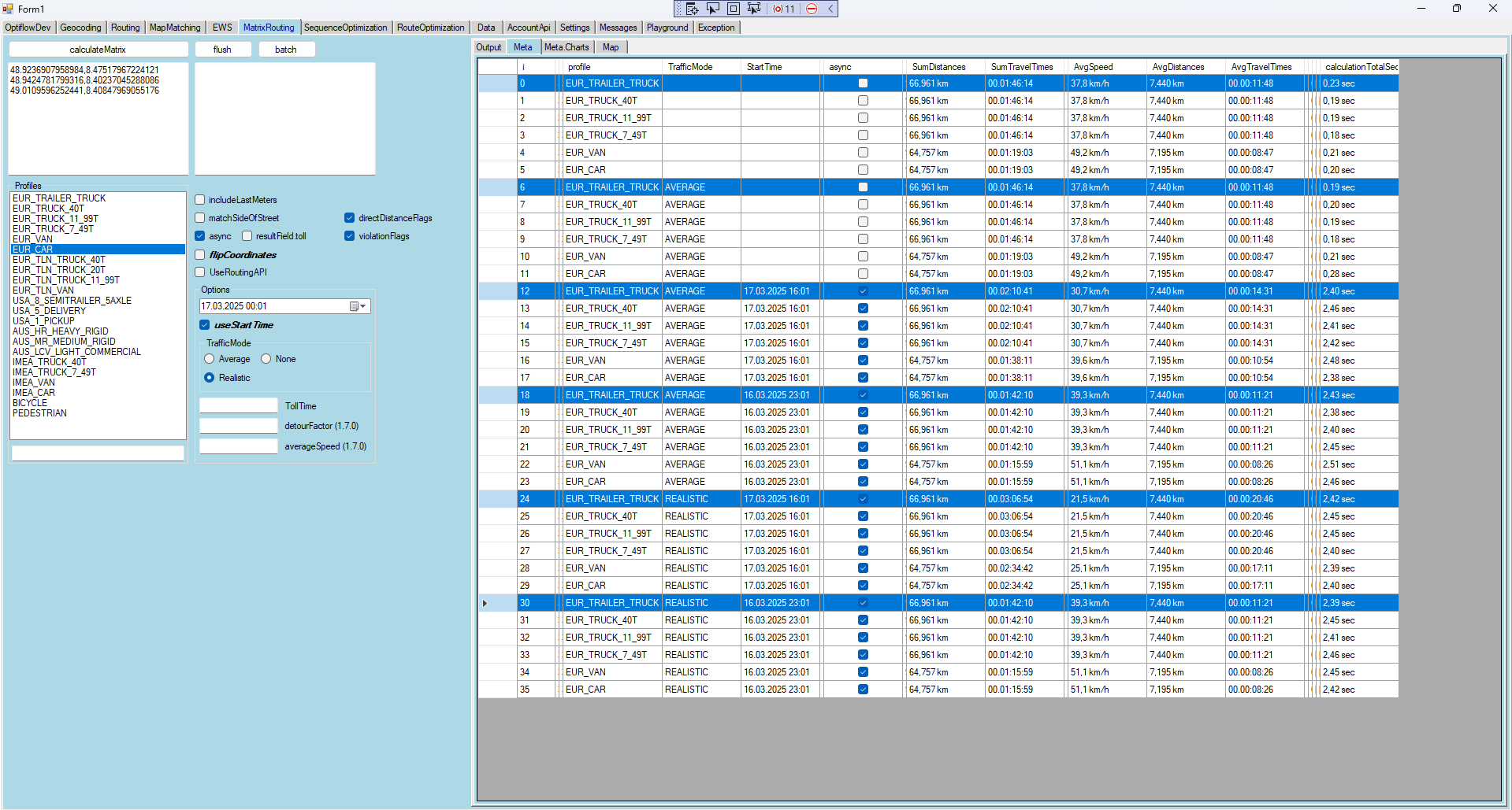 Developer.Matrix Routing : Traffic Modes comparison