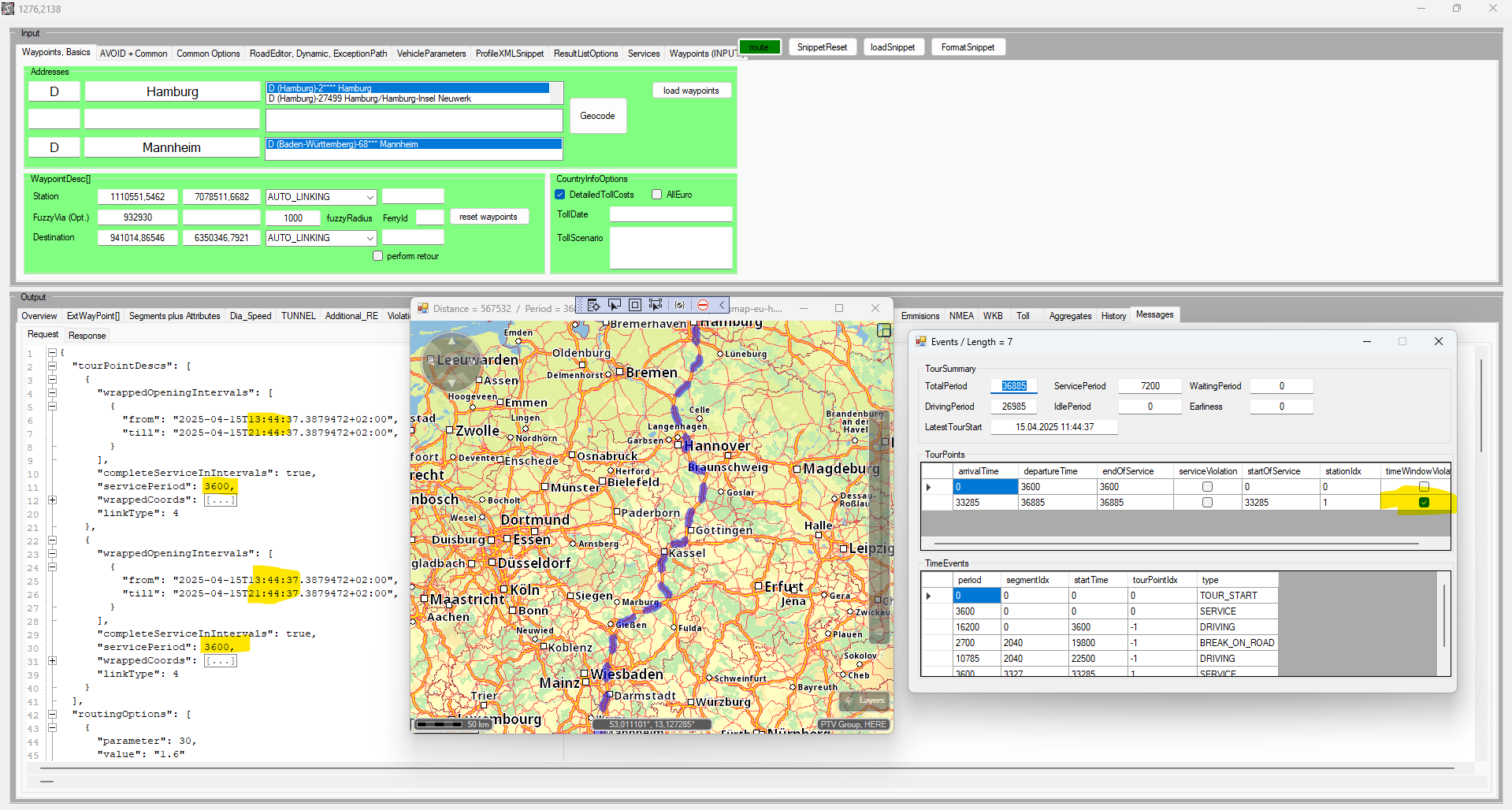 in the com.ptvag.xserver.xroute.TourPointDesc of xRoute1.calculateAdvancedTour a TourPointDesc it was possible to set the completeServiceInIntervals property: