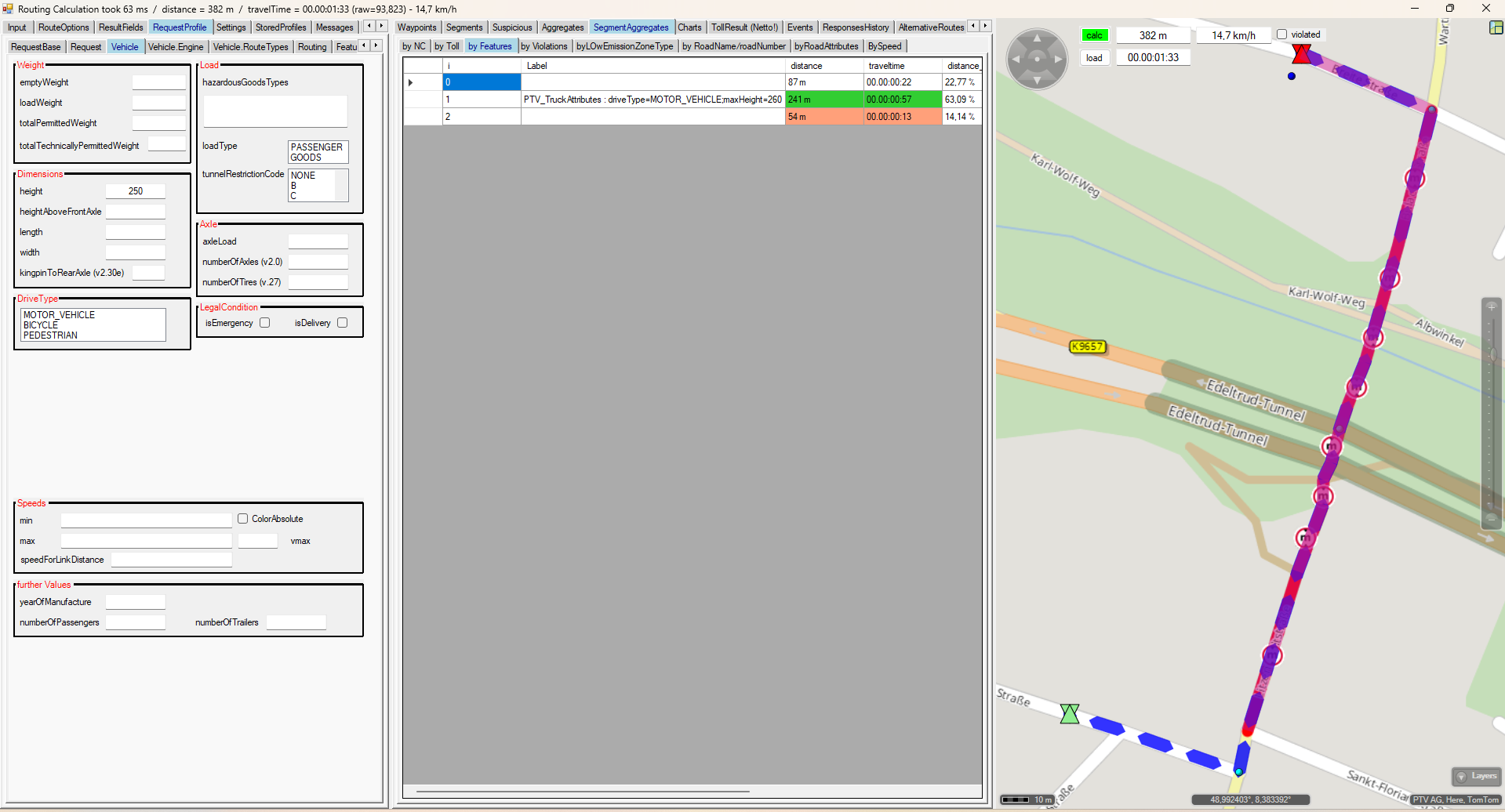 • Original TruckAttributes below the major road are set to maxHeight=2.60m, vehicle's height is 2.50m
